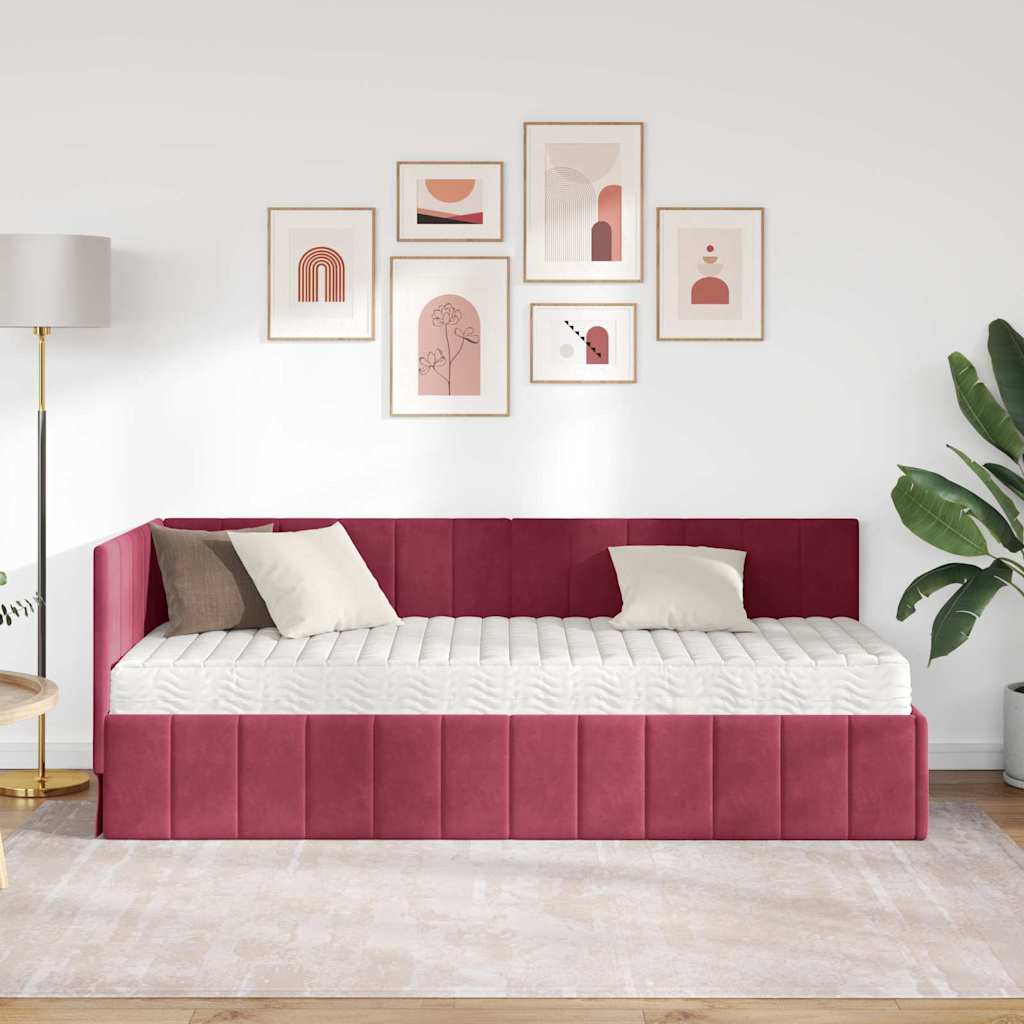 Das moderne rechteckige Velvet Corner Bed Frame ist der perfekte Blickfang für jedes stylische Schlafzimmer. Sein schlankes Design zusammen mit dem hochwertigen Samt-Headboard verleiht einen weichen Touch, der die Eleganz deines Raumes hebt. Aus Holzwerkstoff gefertigt, bietet es eine starke und langlebige Basis, genau das Richtige für Stadtbewohner und Minimalisten, die ihren Schlafbereich mit einem Hauch von Flair und Funktion aufpeppen wollen. Materialien: Das Bettgestell ist aus hochwertigem Holzwerkstoff und sieht damit robust und stylish aus. Dazu kommt das weiche Samt-Headboard, das eine gemütliche und luxuriöse Atmosphäre schafft. Es verspricht sowohl Stil als auch Langlebigkeit. Inklusive Komponenten: Du bekommst ein rechteckiges Eckbettgestell zusammen mit einer bequemen Schaumstoffmatratze. Diese Matratze unterstützt alle Körpertypen gut und hat eine mittlere Festigkeit, die verschiedene Schlafstile angenehm macht. Alles ist perfekt aufeinander abgestimmt für besseres Schlafen. Eigenschaften / Funktion: Die schlanken Beine geben den stabilen Halt, während sie den minimalistischen Look unterstützen. Der feste Lattenrost hält die Matratze sicher an ihrem Platz und trägt zur allgemeinen Festigkeit bei. Empfohlene Verwendung: Am besten für Schlafzimmer, passt der Rahmen gut zu modernen oder minimalistischen Umgebungen. Es ist sowohl ein praktischer Schlafplatz als auch ein stilvoller Hingucker, der Form und Funktion verbindet. Pflege & Wartung: Halte diese Schönheit in gutem Zustand, indem du die Oberfläche mit einem trockenen Tuch abwischst, um Staub fernzuhalten. Das Samt-Headboard braucht nur eine sanfte Behandlung mit einer weichen Bürste, um die tolle Textur frisch zu halten.