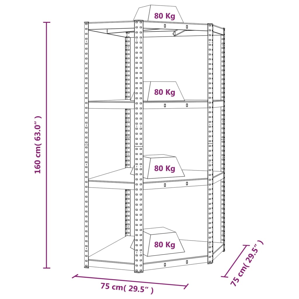 Dieses Eckregal ist sowohl für den privaten als auch für den gewerblichen Bereich hervorragend geeignet und bieten viel Platz, um alle Gegenstände ordentlich aufzubewahren. Robustes Material: Das Lagerregal besteht aus einem Stahlrahmen und Holzwerkstoffplatten. Der Stahlrahmen garantiert Robustheit und Stabilität, während der Holzwerkstoff Stärke, Stabilität und Beständigkeit gegen Feuchtigkeit bietet.Hohe Tragfähigkeit: Dank des starken Materials, der Verstärkungsstangen unter jedem Regalboden und des Regaldesigns ohne Verschraubung hat dieses Regal eine überragende Tragfähigkeit.Flexible Lagerung: Die Einlegeböden sind höhenverstellbar. So bietet das Regal reichlich Stauraum für alle Gegenstände, die du organisiert aufbewahren möchtest, um stets für Ordnung und Übersichtlichkeit zu sorgen. Hinweis:Jedes Produkt wird mit einer Montageanleitung in der Verpackung für eine einfache Montage geliefert. Achtung:Um ein Umkippen zu verhindern, muss dieses Produkt mit einer Wandhalterung gesichert werden (Wandhalterung ist nicht im Lieferumfang enthalten).