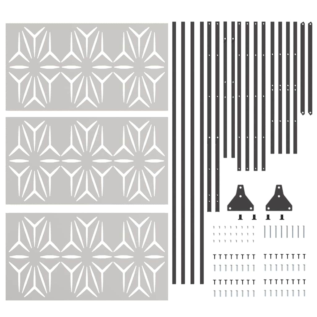 Dieses Outdoor Edelstahlzaunpanel ist eine stylische Art, deinen Außenbereich aufzupeppen und gleichzeitig praktische Grenzen zu setzen. Sein modernes Design mit glatten Oberflächen und dem künstlerischen Blütenblatt-Muster macht es zur perfekten Wahl, um eine einladende Atmosphäre in Gärten und Patios zu schaffen. Langlebigkeit: Hergestellt aus hochwertigem Edelstahl, ist dieses Zaunpanel dafür gemacht, lange zu halten und sich bestens für den Einsatz draußen eignet. Elegantes Design: Das Blütenblatt-Muster gibt einen künstlerischen Touch, erhöht die visuelle Attraktivität und passt gut zu unterschiedlichen Außenstilen. Vielseitige Verwendung: Perfekt zur Abgrenzung von Bereichen oder als Deko, macht dieses Zaunpanel deinen Raum schöner, ohne an Funktionalität zu verlieren. Benutzerfreundlichkeit: Für die Installation braucht man zwei Personen und ein paar grundlegende Werkzeuge, damit du es schnell und unkompliziert aufbauen kannst. Praktische Größe: Das hohe Panel passt gut in viele Außenräume und fügt sich markant, aber harmonisch in Gärten oder Patios ein.