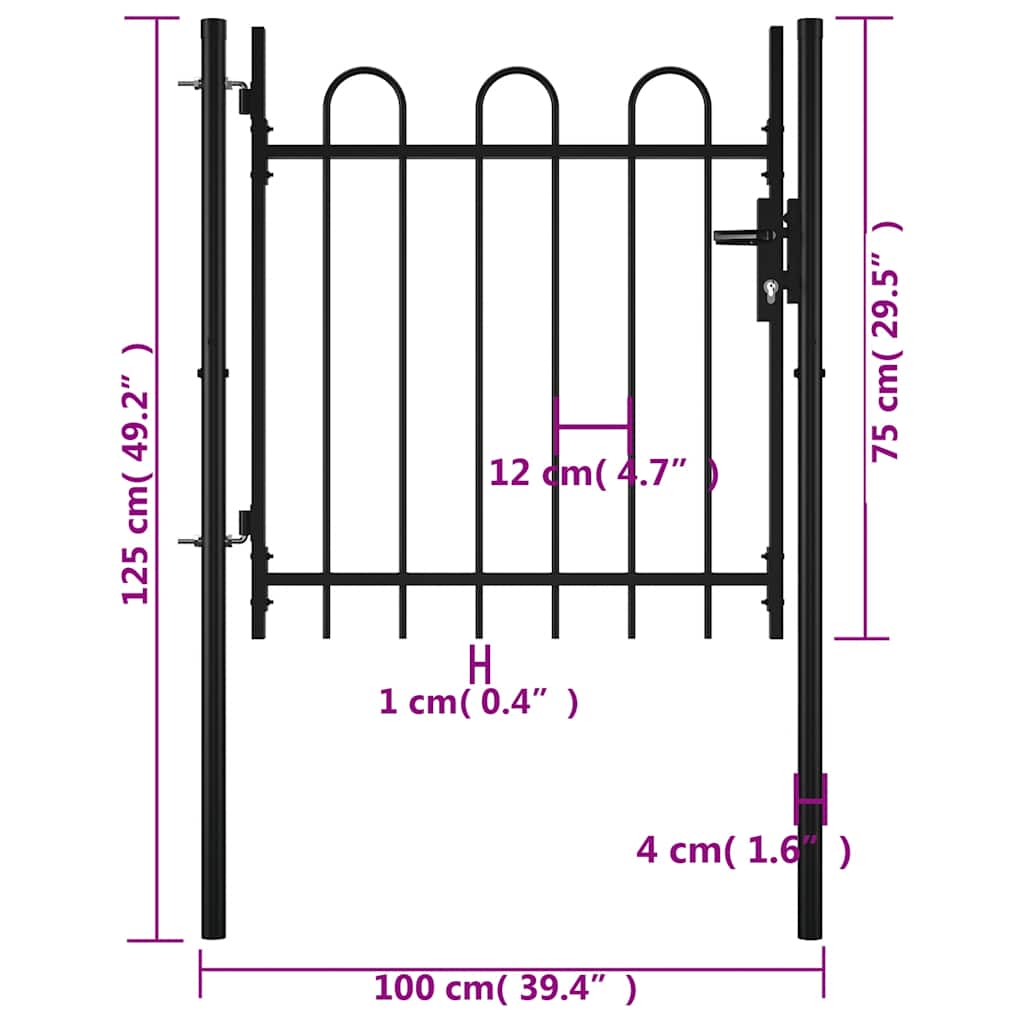 Dieses Gartentor wird eine moderne, praktische Barriere sein, die Ihren Garten von der Außenwelt trennt. Äußerst stabil und haltbar, wird das Zauntor eine praktische Barriere für Ihren Garten, Innenhof oder Ihre Terasse sein. Mit seinem eleganten Bügel-Design und einer starken horizontalen Strebe zur Verstärkung des Rahmens bietet dieses Gartentor Sicherheit und bildet gleichzeitig einen wunderbaren Zugang zu Ihrem Grundstück. Das Tor ist aus Hochleistungsstahl gefertigt und gegen Rost und Korrosion pulverbeschichtet. Zudem kommt es mit einem Bolzenscharnier zur Schnellverriegelung, sowie mit Montagepfosten zum einfachen Montieren. Drei passende Schlüssel sind ebenfalls im Lieferumfang enthalten. Dieses Tor ist eine großartige Kombination aus Stil, Robustheit, Stabilität und Korrosionsbeständigkeit.