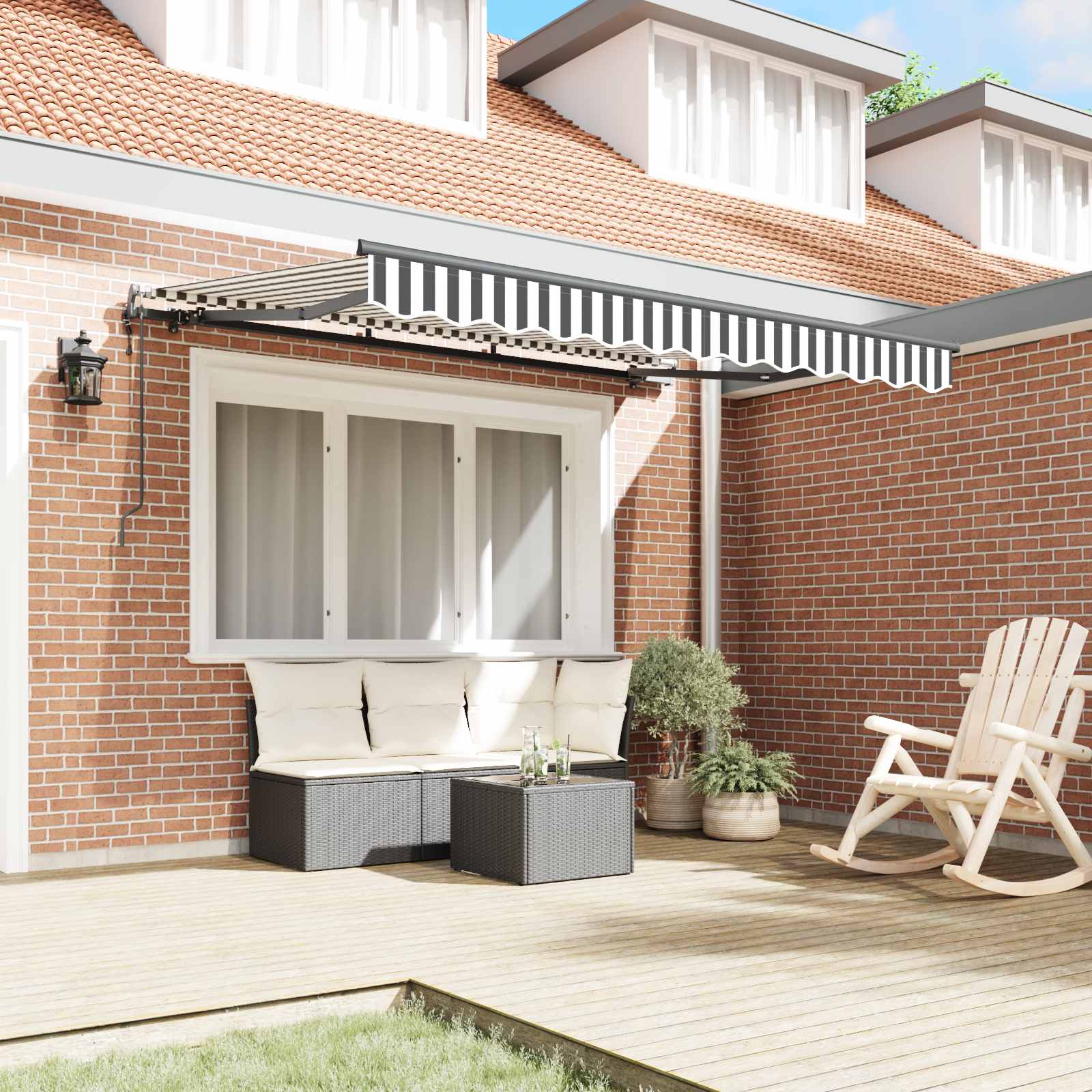 Diese coole einziehbare Markise ist für Gärten und Terrassen gemacht und bietet dir sowohl Style als auch praktische Vorteile. Ihr schlichtes, modernes Design mit gestreiften Mustern sorgt für eine lebendige Atmosphäre und bietet Schatten vor der heißen Sommersonne. Europäisch inspiriertes Design Ideal für moderne Außenbereiche ? die Markise mit ihrem cleanen Look und den klaren Linien passt super in jede Terrassen- oder Patio-Gestaltung. Die einziehbare Funktion macht sie zu einer flexiblen Lösung für alle, die Style und Funktionalität möchten. Robuste Materialien Der Stoff ist langlebig und widerstandsfähig gegen UV-Strahlen und Wasser. Der Aluminiumrahmen sorgt für Stabilität und ist trotzdem leicht, was die Installation einfach macht. Flexible Funktionalität Das einziehbare Design lässt die Markise komplett ausfahren, um maximalen Schutz zu bieten, oder zurückgezogen werden, um Platz zu sparen. Ideal, um sich an unterschiedliche Lichtverhältnisse anzupassen und optimalen Komfort zu bieten. Einfache Pflege Für die Markise braucht's kaum Wartung ? ein schnelles Abwischen mit einem feuchten Tuch reicht, um sie in Topform zu halten. Die Materialien sind so gemacht, dass sie den Wetterbedingungen standhalten, was für Langlebigkeit und wenig Pflegeaufwand sorgt. Anpassbar an verschiedene Umgebungen Ob im Garten, auf der Terrasse oder am Pool ? diese Markise bietet flexible Schattenlösungen für alle Außenbereiche. Perfekt für Sommerfeste oder entspannte Rückzugsorte.