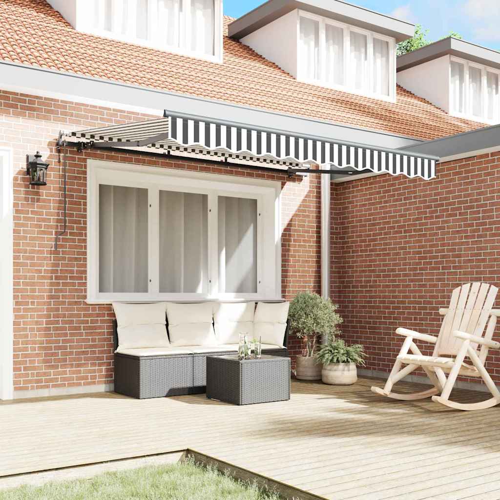 Diese ausziehbare Markise für draußen ist eine coole Möglichkeit, deine Terrasse, dein Deck oder deinen Garten an sonnigen Tagen kühl und gemütlich zu halten. Wenn dein Zuhause viel Sonne abbekommt, ist diese Markise genau das Richtige, um deinen Außenbereich in einen schattigen Treffpunkt zu verwandeln, wo du entspannen oder Spaß haben kannst. Sie sieht toll aus und funktioniert super, passt zu jedem Stil deiner Außengestaltung. Du kannst sie leicht an wechselndes Wetter anpassen ? einfach ausziehen oder zurückziehen, um den ganzen Tag über bequem zu bleiben. Mit ihrem ausziehbaren Design kannst du sie so nutzen, wie du willst, und dabei gut aussehen. UV-beständige Materialien: Diese Markise ist aus Materialien gemacht, die UV-Strahlen standhalten, ohne abzunutzen. Sie behält ihre Farbe und Haltbarkeit, sodass du entspannt im Schatten chillen kannst, ohne dir Gedanken über Sonnenschäden machen zu müssen. Ob beim Familien-Barbecue oder einfach nur beim Lesen draußen, sie bietet einen gemütlichen, geschützten Raum. Verstellbare Armlehnen: Mit verstellbaren Armlehnen kannst du den Winkel und die Position ganz nach deinen Bedürfnissen anpassen. So bleibt es immer bequem, egal wie die Sonne steht. Einziehbare Funktion: Dank des einziehbaren Designs kannst du sie schnell ausrollen für vollen Schatten oder zurückziehen, wenn du ein bisschen Sonne haben willst. Außerdem ist sie leicht zu lagern, wenn du sie nicht mehr brauchst, und minimiert den Verschleiß, damit sie lange hält. Saisonale Nutzung: Diese Markise ist perfekt für den Sommer und macht das Draußensein einfach. Sie schützt dich vor direkter Sonne und leichtem Regen und verwandelt Terrassen und Decks in gemütliche Orte, an denen du gerne Zeit verbringst. Montagehinweise: Folge einfach den Anweisungen, um sie richtig aufzubauen. Achte darauf, dass alles gut ausgerichtet und festgezogen ist, um Sicherheit und beste Leistung zu gewährleisten. Halte sie regelmäßig in Schuss, damit sie zuverlässig bleibt und gut aussieht, Saison für Saison.