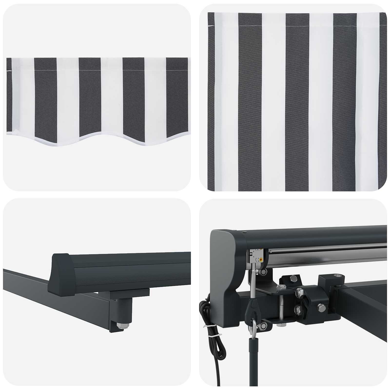 Dieses moderne einziehbare Sonnensegel ist die perfekte Ergänzung für jeden Garten oder jede Terrasse und bietet eine stylische und funktionale Lösung für Sonnenschutz. Mit eleganten Linien und einem minimalistischen Design macht es jedes Outdoor-Setting attraktiver. Egal, ob du eine Sommerparty schmeißt oder einen ruhigen Platz in der Sonne suchst, es passt zu unterschiedlichen Bedürfnissen. Die einziehbare Funktion bietet flexible Schattierung und Komfort an sonnigen Tagen. Es ist ideal für draußen und passt sich nahtlos an Garten- und Terrassenumgebungen an. Hochwertige Materialien: Aus einer Kombination von Polyester und Metall gefertigt, bietet diese Markise eine starke und zuverlässige Struktur. Der Polyesterstoff ist langlebig und der Metallrahmen sorgt für stabilen Halt, was die Langlebigkeit bei jedem Wetter erhöht. Einziehmechanismus: Genieß anpassbare Beschattung mit der einziehbaren Funktion. Dieses praktische Design ermöglicht einfache Steuerung und Anpassung an das wechselnde Sonnenlicht während des Tages, was es zu einer benutzerfreundlichen Wahl für komfortable Lösungen im Freien macht. Wetterbeständig: Entwickelt mit UV-, wasser- und farbechten Eigenschaften bleibt diese Markise auch bei schlechtem Wetter in Top-Form. Mit dieser Funktion kannst du dich auf konsistenten Schutz und Stil verlassen. Aufbaudetails: Passt auf, der Aufbau braucht zwei Personen mit einem Schraubendreher. Dieser einfache Aufbau macht es leicht und erfordert keine speziellen Werkzeuge, was es für jeden Hausbesitzer zugänglich macht. Sommer-Attraktivität: Speziell für die Sommer-Nutzung konzipiert, macht dieses Sonnensegel deinen Außenbereich während der warmen Monate viel angenehmer, indem es unbedingt nötigen Schatten gegen die Hitze bietet und eine einladende Atmosphäre schafft.