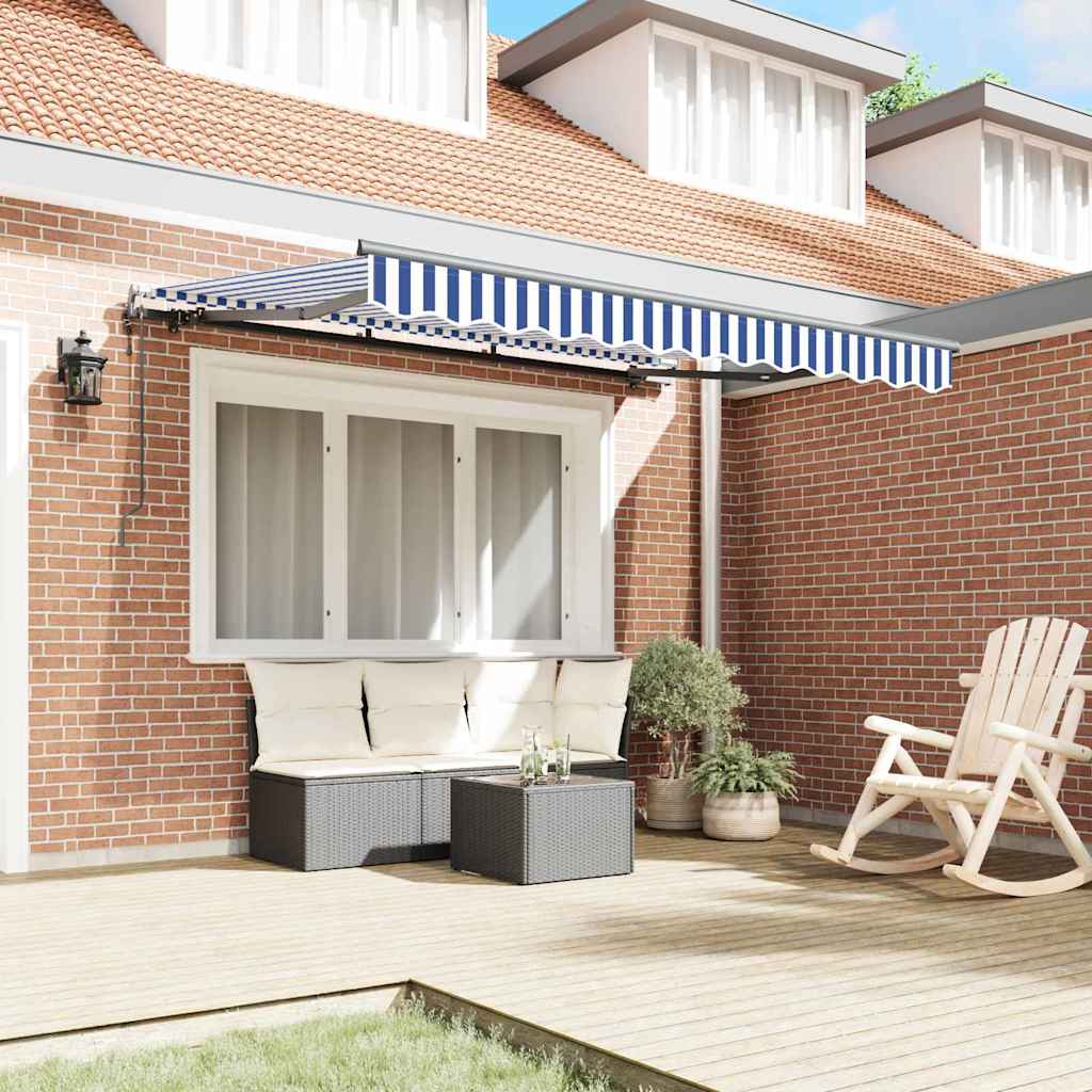 Diese coole einziehbare Markise ist für Gärten und Terrassen gemacht und bietet dir sowohl Style als auch praktische Vorteile. Ihr schlichtes, modernes Design mit gestreiften Mustern sorgt für eine lebendige Atmosphäre und bietet Schatten vor der heißen Sommersonne. Europäisch inspiriertes Design Ideal für moderne Außenbereiche ? die Markise mit ihrem cleanen Look und den klaren Linien passt super in jede Terrassen- oder Patio-Gestaltung. Die einziehbare Funktion macht sie zu einer flexiblen Lösung für alle, die Style und Funktionalität möchten. Robuste Materialien Der Stoff ist langlebig und widerstandsfähig gegen UV-Strahlen und Wasser. Der Aluminiumrahmen sorgt für Stabilität und ist trotzdem leicht, was die Installation einfach macht. Flexible Funktionalität Das einziehbare Design lässt die Markise komplett ausfahren, um maximalen Schutz zu bieten, oder zurückgezogen werden, um Platz zu sparen. Ideal, um sich an unterschiedliche Lichtverhältnisse anzupassen und optimalen Komfort zu bieten. Einfache Pflege Für die Markise braucht's kaum Wartung ? ein schnelles Abwischen mit einem feuchten Tuch reicht, um sie in Topform zu halten. Die Materialien sind so gemacht, dass sie den Wetterbedingungen standhalten, was für Langlebigkeit und wenig Pflegeaufwand sorgt. Anpassbar an verschiedene Umgebungen Ob im Garten, auf der Terrasse oder am Pool ? diese Markise bietet flexible Schattenlösungen für alle Außenbereiche. Perfekt für Sommerfeste oder entspannte Rückzugsorte.