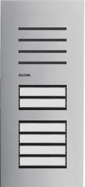 Außenstation zur Montage in separaten erhältlichen Gehäusen UP oder AP, bestehend aus einer 2 mm dicken Frontplatte aus Edelstahl matt gebürstet mit Sprechöffnungen, schraubenlose Befestigung für Gehäuse (Auf-/Unterputz) mit Einrast-Federmechanismus und Öffnungsmechanik mit Vandalenschutz, flächenbündiges Namensschild(er) (von vorn wechselbar) mit Ruftaste(n) inklusive weißer LED-Hinterleuchtung und steckbarem Anschluss-Klemmblock mit Schraubklemmen. Vorverdrahtete Frontplatte mit Elektronikkomponenten in gekapselter Monoblock-Bauweise mit Lautsprecher und Mikrofon. Geräte-Konfiguration über rückseitiges LED-Display mit 3 Softtasten und 7-Segment-Anzeige, Anzeigemodus 180 Grad drehbar für eine optimale Lese- und Bedienbarkeit sowie automatische Adressierung bei erstmaligem Spannungszuschaltung. Umgebungslicht abhängige Einschaltung der Tastenbeleuchtung, anpassbar an Umgebungsverhältnisse über Helligkeitssensor. Funktionen: Integrierter Türöffnerkontakt, Ruftaste mit Licht-/Türöffner-/Relais-Funktion einstellbar. Lautstärke, Mikrofonempfindlichkeit, Türöffnerfunktion und Ruftaster-Hinterleuchtung einstellbar. Ruftaster mit Quittierungston (abschaltbar) und taktiler Rückmeldung. Lautsprecher und Mikrofon sabotagegeschützt. Ein-Mann-Inbetriebnahme durch LED-Display Konfiguration.