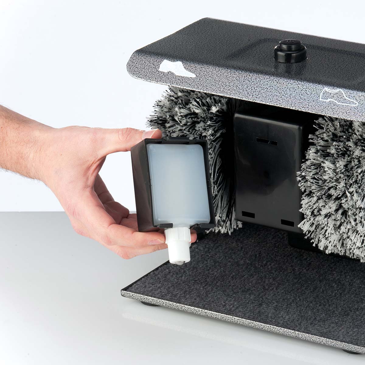 Ausgestattet mit zwei separaten Bürsten für helle und dunkle Schuhe und mit einer Leistung von 90 Watt ist diese Schuhputzmaschine für die meisten Arten von Schuhen geeignet. Der Druckknopf auf der Oberseite ermöglicht eine einfache Bedienung mit dem Fuß. Im Spender können Sie flüssige Schuhcreme für noch bessere Pflege und einen schönen Glanzeffekt hinzufügen.