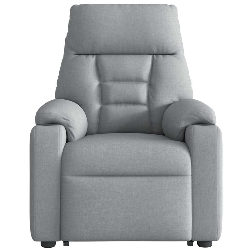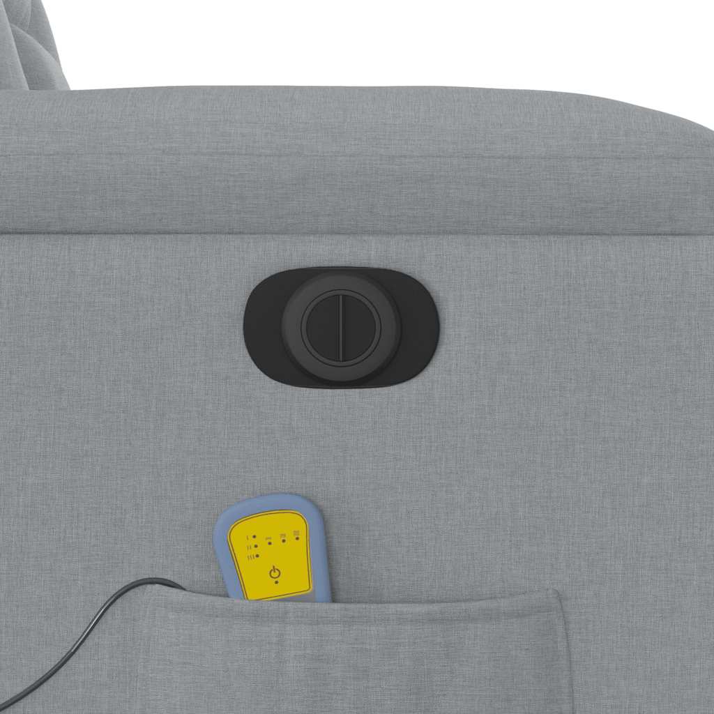 Lehne dich zurück und entspanne dich in diesem äußerst bequemen elektrischen Massagesessel mit Aufstehhilfe! Elektrische Aufstehhilfe: Dieser Relaxsessel ist mit einem Elektromotor zum Anheben ausgestattet. Dank der Aufstehhilfe, die den gesamten Sessel nach oben bringt, kannst du ganz einfach auf Knopfdruck aufstehen, ohne deinen Rücken und deine Knie zu belasten.Elektrische Liegefunktion: Dieser Relaxsessel ist mit einem Elektromotor ausgestattet, der Fußstütze und Rückenlehne durch einfaches Drücken des seitlichen Knopfes automatisch in jede gewünschte Position bringt. Diese Funktion ermöglicht eine maximale Neigung von 135 Grad. Darüber hinaus lässt sich die Rückenlehne auf Knopfdruck automatisch in die ursprünglichen Position zurückbringen.Vibrationsfunktion: Dank der 6 Massagepunkte genießt du eine gezielte Massage. Zudem lassen sich verschiedene Massageprogramme über die mitgelieferte Handsteuerung auswählen. Die Massagefunktion wird über den USB-Anschluss betrieben, der eine zertifizierte 5-V-USB-Stromquelle erfordert (nicht im Lieferumfang enthalten).Bequemes Sitzerlebnis: Die dick gepolsterte Sitzfläche, die Rückenlehne und die breiten Armlehnen sorgen für ein behagliches und wohliges Sitzgefühl. Der Bezug aus Stoff weist eine schlichte und saubere Optik auf und ist auch atmungsaktiv und langlebig.Praktische Getränkehalter und Seitentasche: Dieser Sessel verfügt über zwei praktische Getränkehalter und eine Seitentasche, in der du deine Fernbedienung oder andere wichtige Sachen griffbereit aufbewahren kannst.Solider und stabiler Rahmen: Der Rahmen aus Holz und Metall sorgt für eine solide Struktur und hohe Stabilität. Dieser TV-Sessel ist bequem und langlebig.
