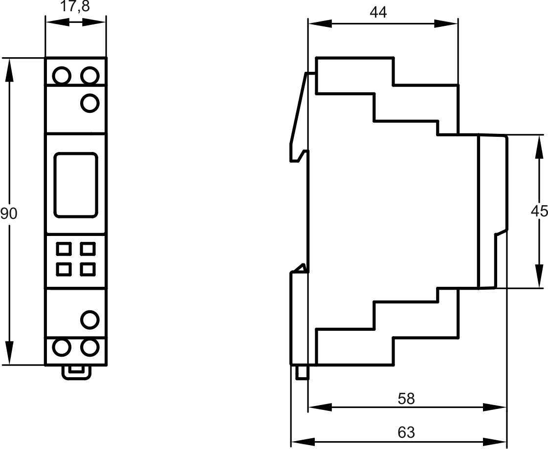 - 564.114: 2 TE / 30 Schaltzeiten / 1 Schließerrelais (16 A) / 10 Jahre Gangreserve