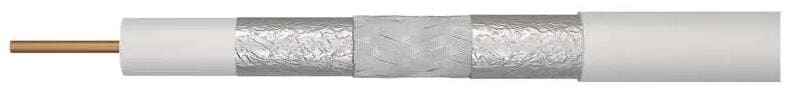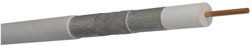 Koaxialkabel Typ RG6 von hoher Qualität mit Mittelleiter aus reinem BC-Kupfer und dreifacher TRISHIELD-Schirmung, Farbe: weiß, CLASS A. Das Kabel ist für alle anspruchsvollen Übertragungsanwendungen - CCTV, TV und SAT-Signale geeignet.