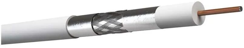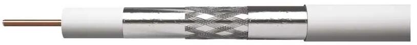 Universales Koaxialkabel Typ RG6 mit Innenleiter aus CCS und doppelter Schirmung aus Aluminium (Al), Farbe weiß. Das Kabel ist für alle Übertragungsanwendungen, TV und SAT-Signale in nicht anspruchsvoller Umgebung bestimmt.