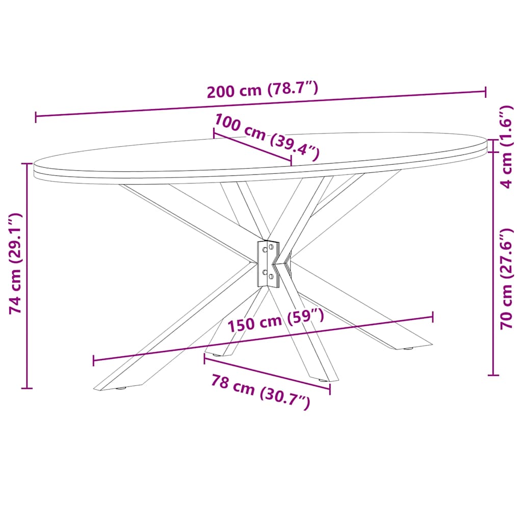 Mach jede Mahlzeit unvergesslich, indem du dich jeden Tag mit deiner Familie oder deinen Freunden um diesen Esstisch aus Holz versammelst! Robustes und langlebiges Material: Massives Eichenholz ist für seine Festigkeit, Haltbarkeit und schöne Maserung bekannt, weshalb es sich hervorragend für haltbare Möbel eignet. Durch seine natürliche Beständigkeit gegen Insektenbefall und Schimmelbildung sehen Eichenmöbel selbst nach jahrelangem Gebrauch brandneu aus.Großer Tisch: Dieser Tisch bietet mit seinen Maßen von 200 x 100 cm viel Platz zum Sitzen und ist das Herzstück deines Essbereichs.Einzigartiger Charme: Da Äste, Risse und Farbabweichungen natürliche Merkmale des Eichenholzes sind, hat jedes Stück dieses Produkts seinen ganz eigenen Charme. Auf den Bildern siehst du Beispiele für die zu erwartenden Variationen.Praktisches Design: Diese Esstischbeine sind mit verstellbaren Nivellierfüßen ausgestattet, die auch auf unebenen Böden für Stabilität sorgen und Bodenkratzer minimieren. Außerdem verfügt die Halterung über vorgebohrte Löcher und mitgelieferte Schrauben, mit denen das Bein an der Tischplatte befestigt werden kann, was die Montage erleichtert.Robustes und stabiles Gestell: Dieser Esszimmertisch verfügt über spinnenförmige Beine aus pulverbeschichtetem Stahl, die für außergewöhnliche Stabilität und Sicherheit sorgen. Gut zu wissen:Jedes Stück ist ein Unikat, das in Farbe und Maserung variiert. Die Lieferung erfolgt in zufälliger Reihenfolge, wodurch die Exklusivität und Individualität deines Produkts gewährleistet wird.Äste und kleinere Fehler werden mit schwarzem Füllmaterial aufgefüllt, um eine schöne und glatte Tischoberfläche zu erhalten. Beispiele findest du in den Abbildungen.Die Tischplatte ist an den Rändern 4 cm dick, um ein robustes Aussehen zu gewährleisten, und in der Mitte 2 cm dick, um den Holzverbrauch und das Gesamtgewicht zu reduzieren.Bitte bohre die Löcher in der Mitte, nicht an den Rändern der Platte.Bitte achte darauf, die maximale Bohrtiefe von 15 mm nicht zu überschreiten, um die Tischplatte nicht zu beschädigen, da die Plattenstärke 20 mm beträgt.Wir empfehlen, einen Schraubendreher anstelle einer elektrischen Bohrmaschine zu verwenden, um Holzrisse beim Anbringen der Beine zu vermeiden.