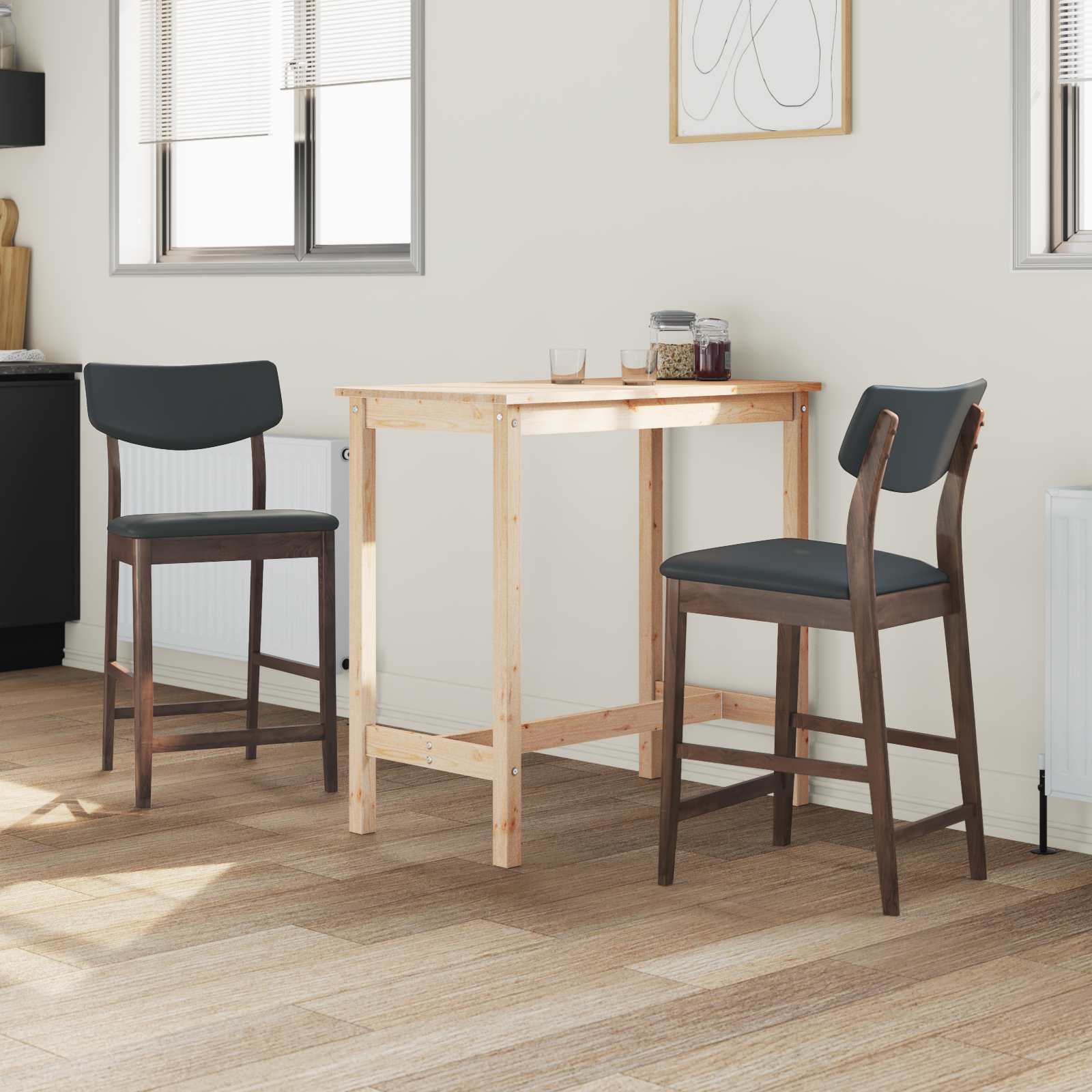 Die Küchen-Esszimmerstühle bringen modernen Stil und Komfort zusammen. Sie sind eine klasse Ergänzung für jeden Essbereich. Mit klaren Linien und schlichtem Design fügen sie sich wunderbar in zeitgemäße Esszimmer ein. Sie sind nicht nur schick, sondern auch sehr praktisch und bieten ein tolles Ambiente, egal ob beim Abendessen oder für besondere Anlässe. Hochwertige Materialien: Diese Stühle bestehen aus solidem Kautschukholz und sind super robust und langlebig. Die natürliche Holzoberfläche bringt Wärme und Stil in deinen Essbereich und sorgt dafür, dass sie lange halten. Sie sind ideal gegen Abnutzung und werden dir viele Jahre gute Dienste leisten. Gut durchdachter Rahmen: Die quadratischen Beine bieten eine tolle Stabilität. Dieses schlichte Design ergänzt moderne Wohnstile und stellt sicher, dass die Stühle immer fest stehen. Egal, ob dein Einrichtungsstil minimalistisch oder ausgefallen ist, diese Stühle passen überall perfekt hinein. Bequeme Sitzposition: Jeder Stuhl hat einen ergonomisch geformten Sitz, der für langen Komfort sorgt. Die Rückenlehnen sehen nicht nur gut aus, sie lassen deine Gäste auch bequem essen und sorgen für eine angenehme Atmosphäre. NUR FÜR INNENRAUM: Diese Stühle sind speziell für Innenräume gemacht und verbessern die Atmosphäre deines Esszimmers. Sie sind perfekt, um einen einladenden Raum zu schaffen, in dem du entspannte Abende oder Feste mit Freunden und Familie genießen kannst. Praktische Pflege: Die Pflege dieser Stühle ist echt einfach ? einfach mit einem feuchten Tuch abwischen. Damit bleiben sie immer in Top-Zustand, sodass du dich darauf konzentrieren kannst, ihre Eleganz und den Komfort zu genießen.