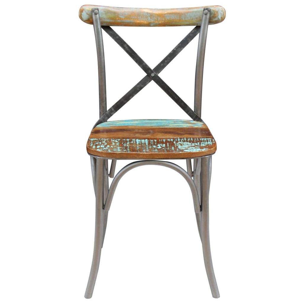 Dieses 2-teilige Esszimmerstuhl-Set aus Holz im Antik-Stil wird eine einzigartige Ergänzung für dein Esszimmer sein. Der Stahlrahmen macht die Stühle stabil und robust. Diese Stühle im Vintage-Stil sind aus massivem Altholz gefertigt, wodurch jedes Möbelstück einzigartig ist und leicht vom nächsten Exemplar abweicht. Möbelstücke aus Altholz verfügen über die Eigenschaften der verschiedenen Holzarten aus denen sie gefertigt sind, wie Teak-, Mango-, Akazienholz usw. Altholz ist robust, stabil, langlebig und schön. Gebrauchsspuren und sichtbare Maserungen verleihen jedem Möbel seine eigene Geschichte und ein einzigartiges Aussehen. Das Stuhl-Set ist vollständig handgefertigt und jeder Arbeitsschritt wird mit größter Sorgfalt ausgeführt. Die offene Rückenlehne und die Mehrfarben-Lackierung ergänzen den auffälligen Retro-Look des Stuhl-Sets. Wichtiger Hinweis: Die Farben variieren von Stück zu Stück und machen jeden einzelnen Esszimmerstuhl zum Unikat. Die Lieferung erfolgt nach dem Zufallsprinzip. Die Lieferung umfasst 2 Esszimmerstühle.