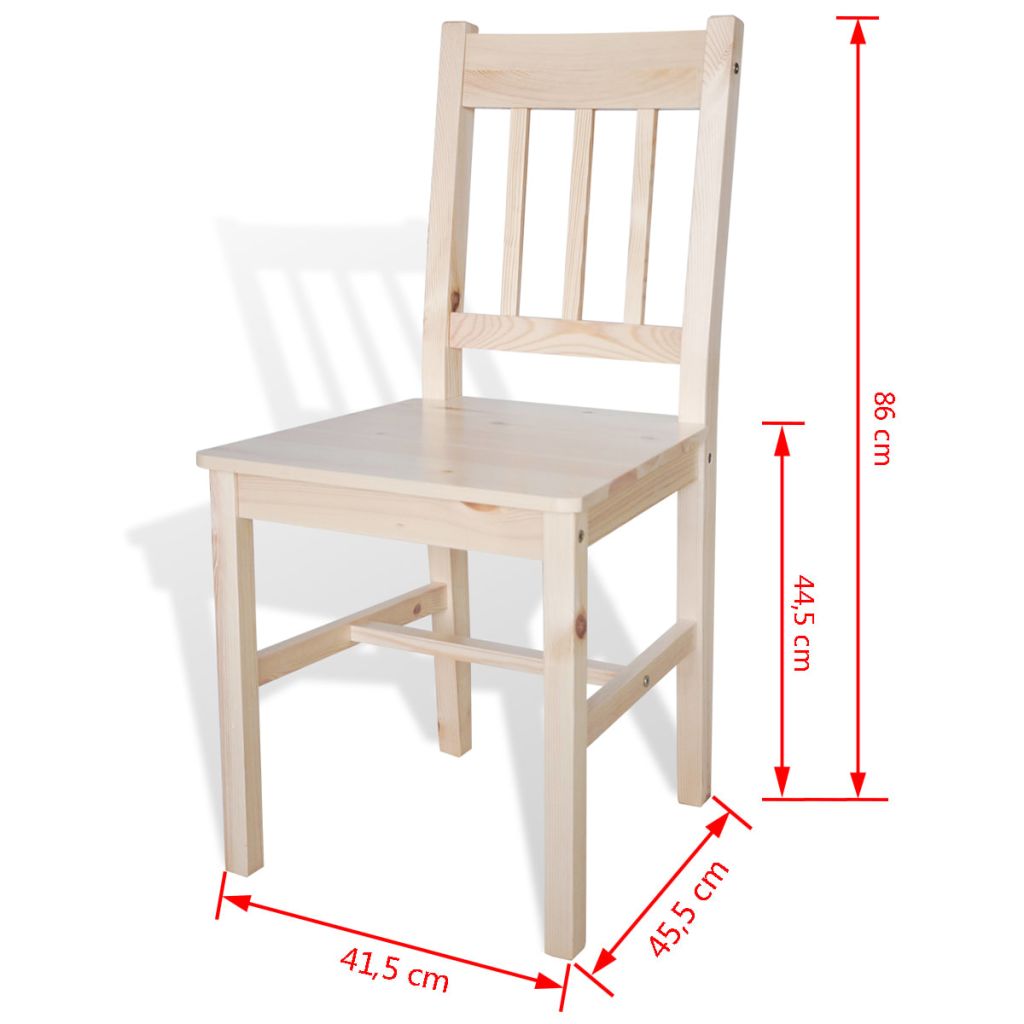 Dieses Holz-Esszimmerstuhl-Set in schlichtem wie elegantem Design, besteht aus 2 Teilen und ist eine hervorragende Ergänzung für Ihr Esszimmer oder Ihre Küche. Massives Kiefernholz: Aus massivem Kiefernholz gefertigt, ist der Stuhl sehr stabil und haltbar.Ergonomisches Design: Dank des ergonomischen Designs bietet der Essstuhl aus Holz zusätzlichen Komfort.Einfache Reinigung: Dank der glatten Lackierung lässt sich der Esszimmerstuhl leicht reinigen.