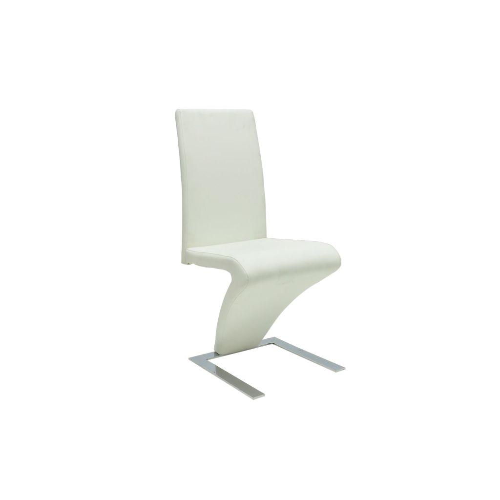 Der moderne Esszimmerstuhl aus PU-Leder in Weiß ist schlicht und zugleich stilvoll. Der edle Stuhl kombiniert einen PU-Sitz in Leder-Optik mit einem verchromten Gestell. Mit seinen klaren Linien und seiner modernen Form wird er deinem Esszimmer den letzten Schliff geben. Leicht zu reinigen!
