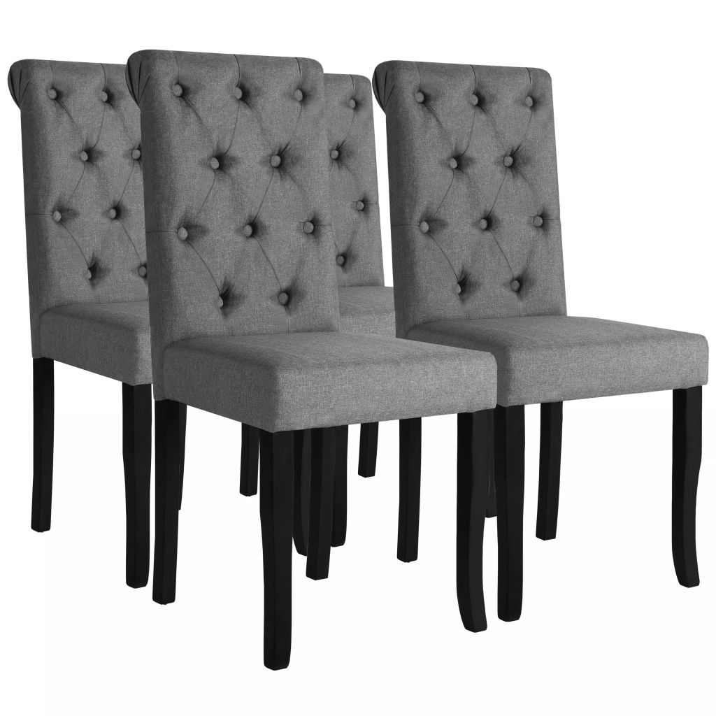 Mit ihrem eleganten und zeitlosen Design sind unsere Esszimmerstühle aus Massivholz eine großartige Ergänzung zu deiner Küche oder deinem Esszimmer. Durch den weichen Stoffbezug und die Polsterung aus Schaumstoff bieten die Stühle viel Komfort. Die Knopfheftung an der Rückenlehne verleiht dem Design eine klassische Note. Die Lieferung umfasst 4 Esszimmerstühle. Der Zusammenbau ist einfach.