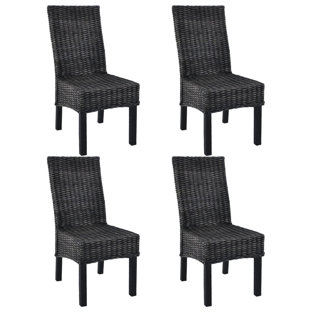 Dieses Kubu Rattan Esszimmerstuhl-Set mit schlichtem Design und perfekt abgestimmter Farbe lässt Ihr Esszimmer in neuem Glanz erstrahlen. Der Rahmen aus Mangoholz und das echte Geflecht machen die Stühle nicht nur solide, sondern auch ästhetisch ansprechend. Die mit Rattan bezogenen Sitze sind sehr bequem und leicht zu reinigen. Wenn Sie auf der Suche nach einer Ergänzung für Ihre Küche oder Ihr Esszimmer sind, wird dieses attraktive, handgeflochtene Rattan-Stuhl-Set Ihre erste Wahl sein. Die Lieferung umfasst 4 Esszimmerstühle.