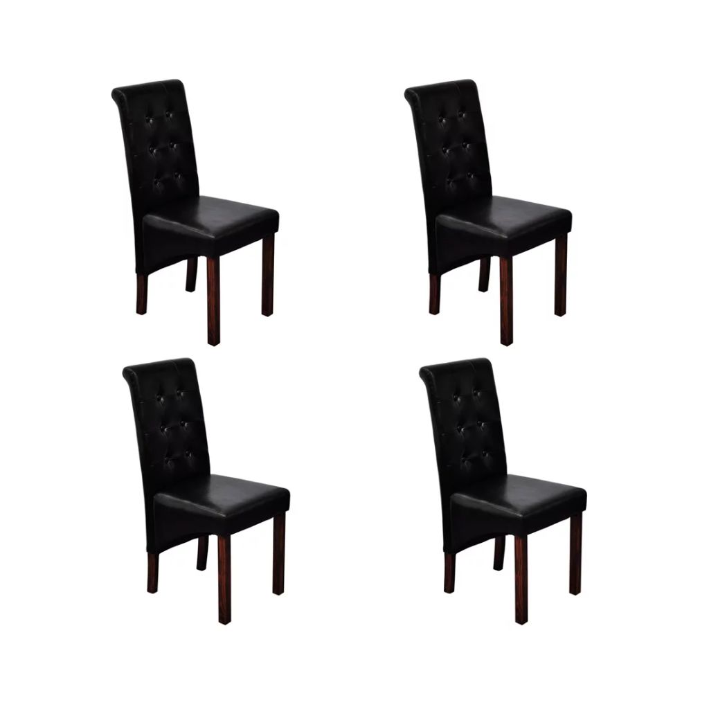 Dieses Set besteht aus 4 komfortablen Esszimmerstühlen im Antik-Design, die mit ergonomisch geformten Sitzflächen und Rückenlehnen versehen sind. Die Beine sind aus Massivholz mit dunkelbrauner Lackierung gefertigt und weisen abgerundete Ecken für mehr Sicherheit auf. Die Stühle lassen sich einfach pflegen und reinigen. Die Sitzflächen und die Rückenlehnen sind mit haltbarem Kunstleder bezogen.