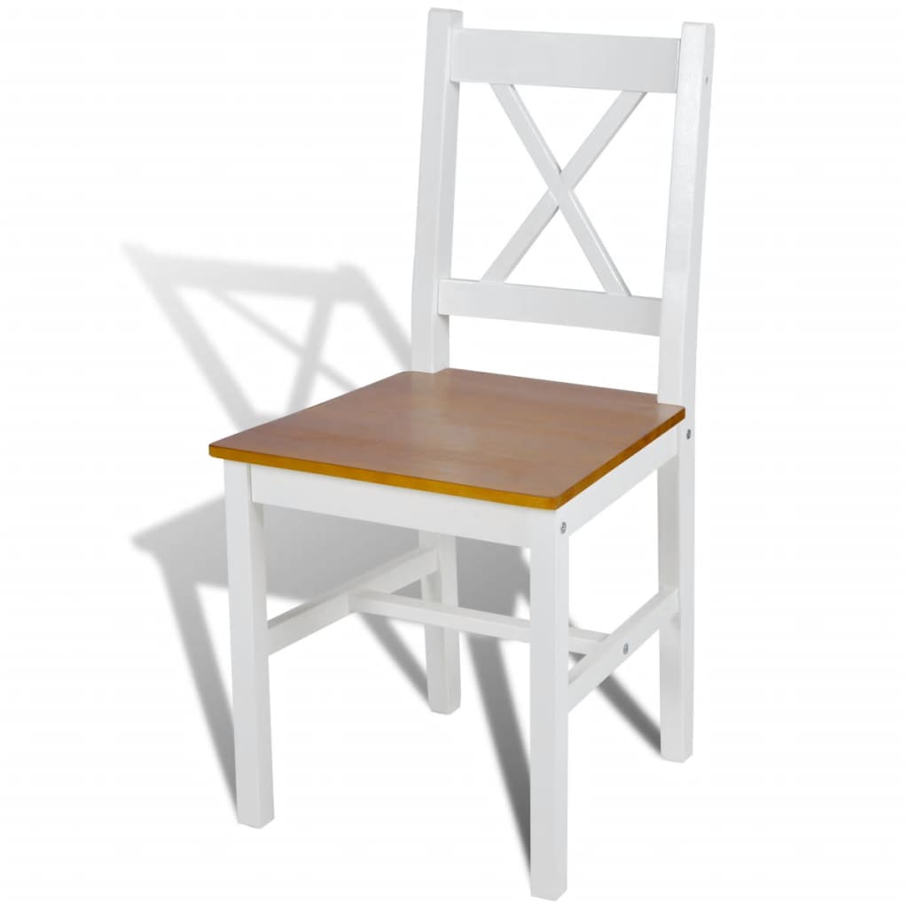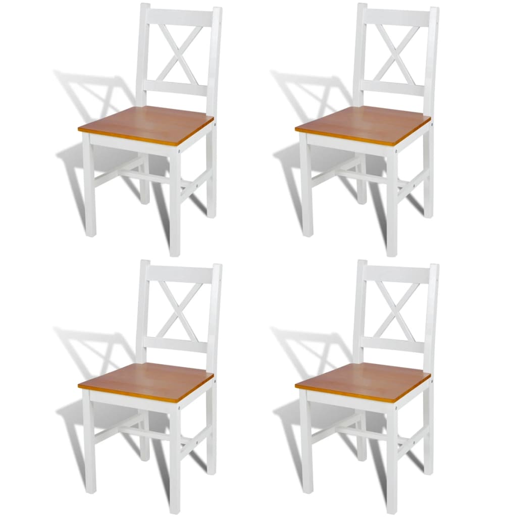 Dieses Set besteht aus 4 Esszimmerstühlen aus Holz, die ein schlichtes und dennoch elegantes Design aufweisen und eine großartige Ergänzung zu deinem Esszimmer oder deiner Küche sind.Die Stühle bestehen aus massivem Kiefernholz, was sie sehr stabil und haltbar macht. Dank der glatten Lackierung lässt sich der Esszimmerstuhl auch leicht reinigen. Durch das ergonomische Design bietet er zusätzlichen Komfort.Die Lieferung umfasst 4 Esszimmerstühle.
