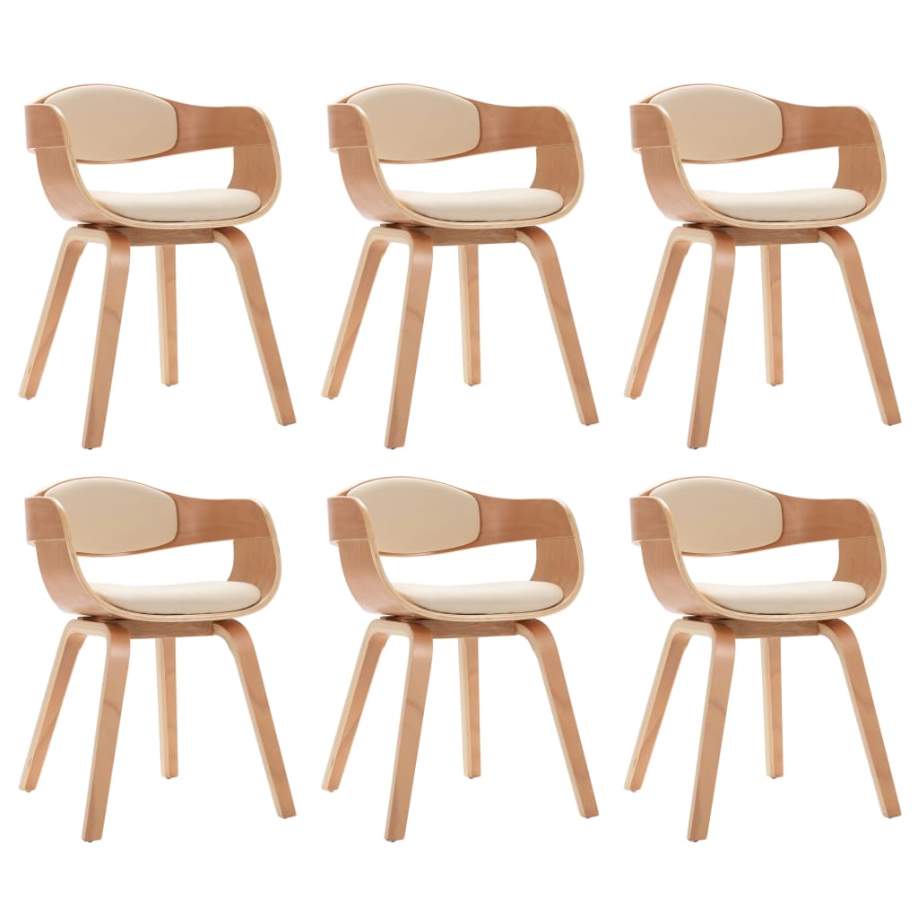 Dieses Set von 6 Esszimmerstühlen in ordentlichem und schlichtem Design soll Ihnen hohen Sitzkomfort bieten. Mit Kunstleder bezogen und dick gepolstert, bietet der Esszimmerstuhl optimalen Komfort. Das robuste Gestell aus Bugholz verleiht ihm einzigartige Schönheit und Stil. Dank des ergonomische Designs ist der Esszimmerstuhl sehr bequem, sodass man stundenlang darauf sitzen kann. Es ist eine perfekte Wahl für Mahlzeiten, Gespräche, Lesen, Fernsehen oder einfach nur zum Entspannen.