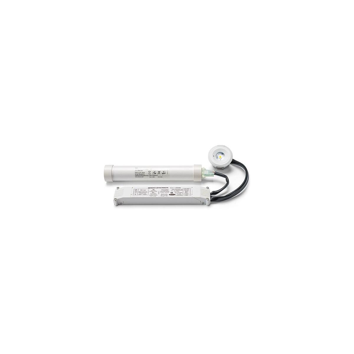 - Einzelbatterie-Notleuchte mit 3 h Notlichtdauer für Deckeneinbaumontage, Betrieb wahlweise in Dauer- oder Bereitschaftsschaltung möglich
