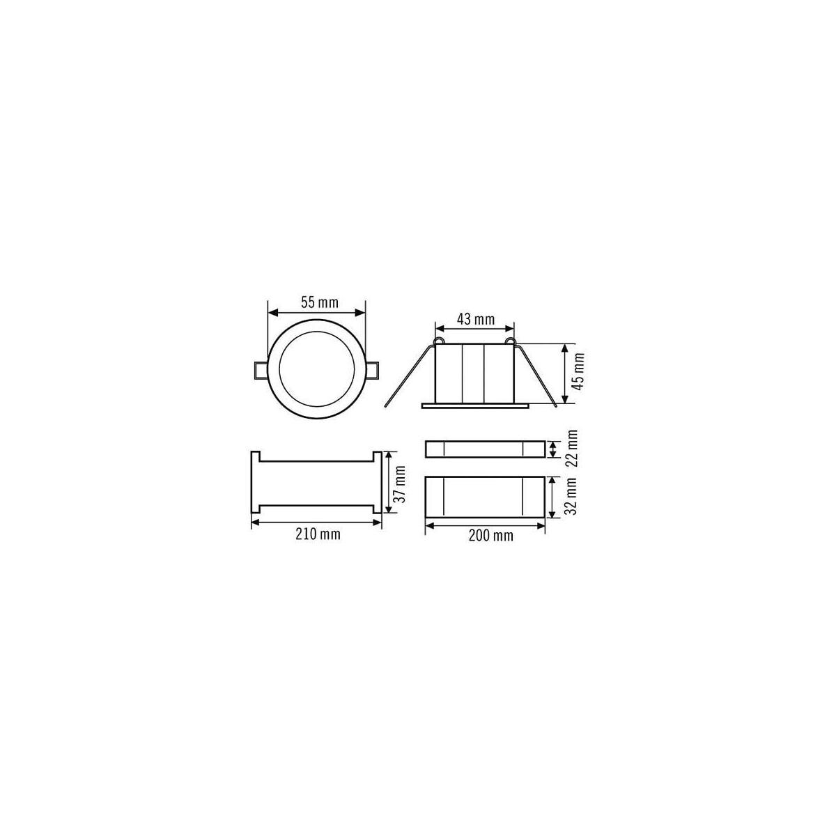 - Abmessungen: Höhe/Tiefe 45 mm, Ø 55 mm