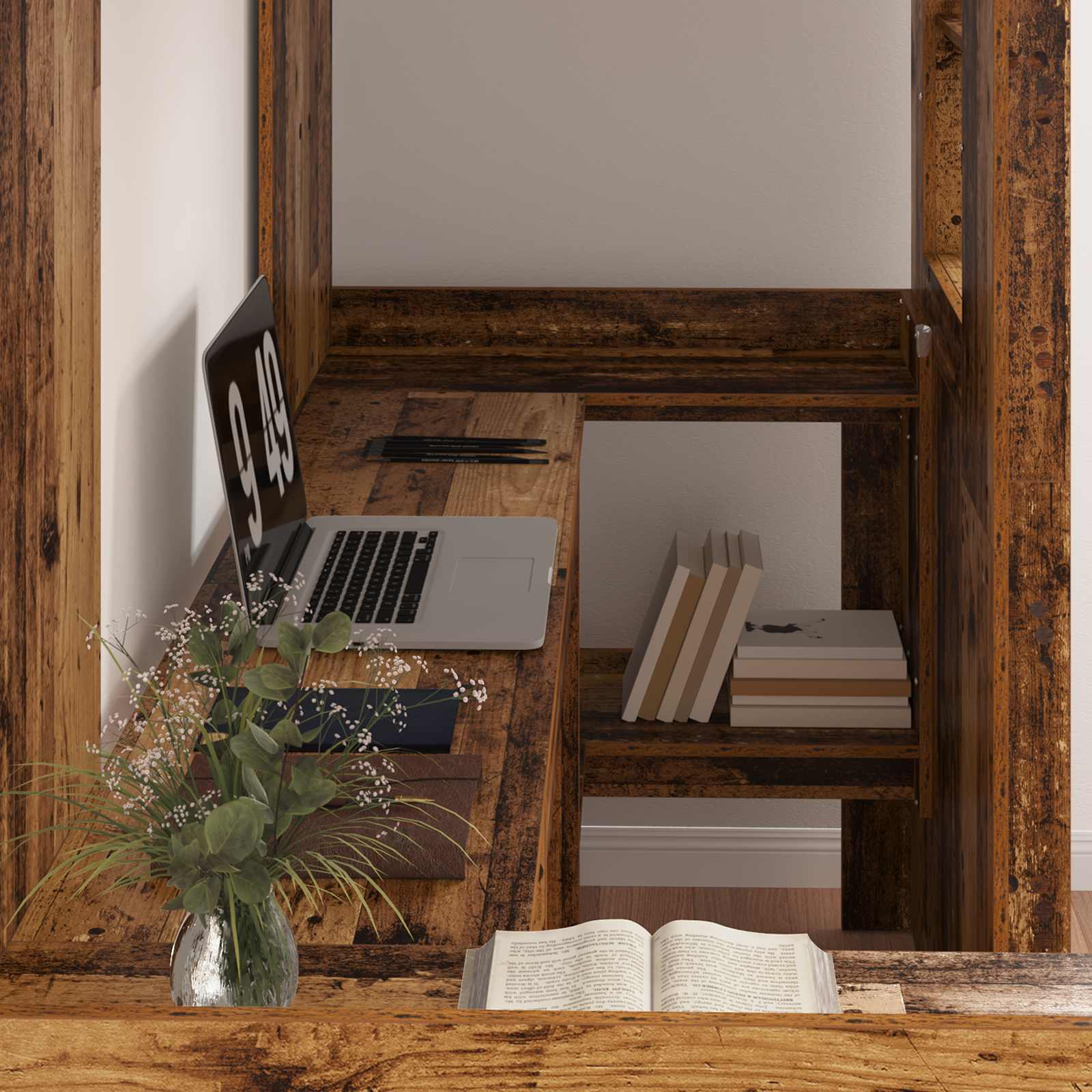 Mobile Preview: Etagenbettgestell mit Schreibtisch Altholz 100 x 200 cm