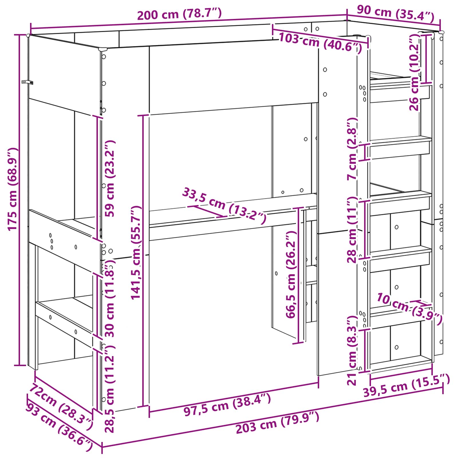 - Gesamtabmessungen: 203 x 103 x 175 cm (L x B x H)