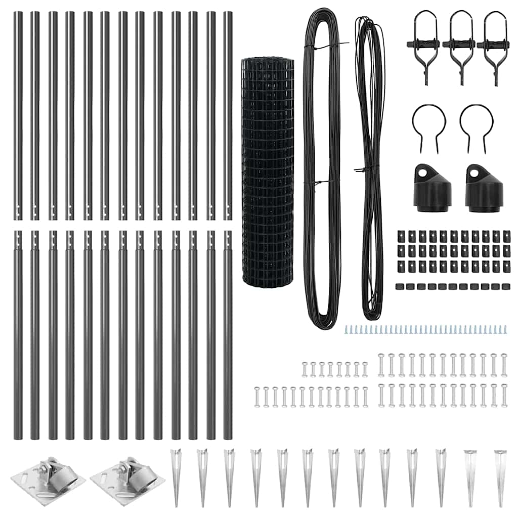 Der vidaXL Euro Zaun ist die perfekte Wahl, um deinem Außenbereich einen neuen Look zu geben und gleichzeitig Sicherheit zu gewährleisten. Er ist stabil, stylisch und in einem modernen Grau gehalten, das jeden Garten oder jedes Grundstück aufwertet. Langlebigkeit: Dieser Zaun ist so konstruiert, dass er sämtlichen Witterungsbedingungen standhält und dir eine lange Lebensdauer sichert. Aus verzinktem Stahl gefertigt, ist er hervorragend resistent gegen Rost und Abnutzung. UV-beständig: Der Zaun hält die Sonnenstrahlen ab, perfekt für sonnige Plätze. Sein graues Finish bleibt lebendig und verblasst nicht. Industrielles Design: Die glatte, matte Oberfläche verleiht deinem Außenbereich einen eleganten Touch und passt perfekt zu modernen Designs. Vielseitige Anwendungen: Gut für eine Vielzahl von Anwendungen, von Gartenzaunen bis hin zu Grundstücksgrenzen, erfüllt dieser Zaun mühelos die unterschiedlichen Bedürfnisse von Hausbesitzern. Komplettpaket: Alles, was du brauchst, wie Zaunpaneele, Pfosten und Drähte, sind im Lieferumfang enthalten, sodass du deinen Raum schnell und stressfrei sichern kannst.