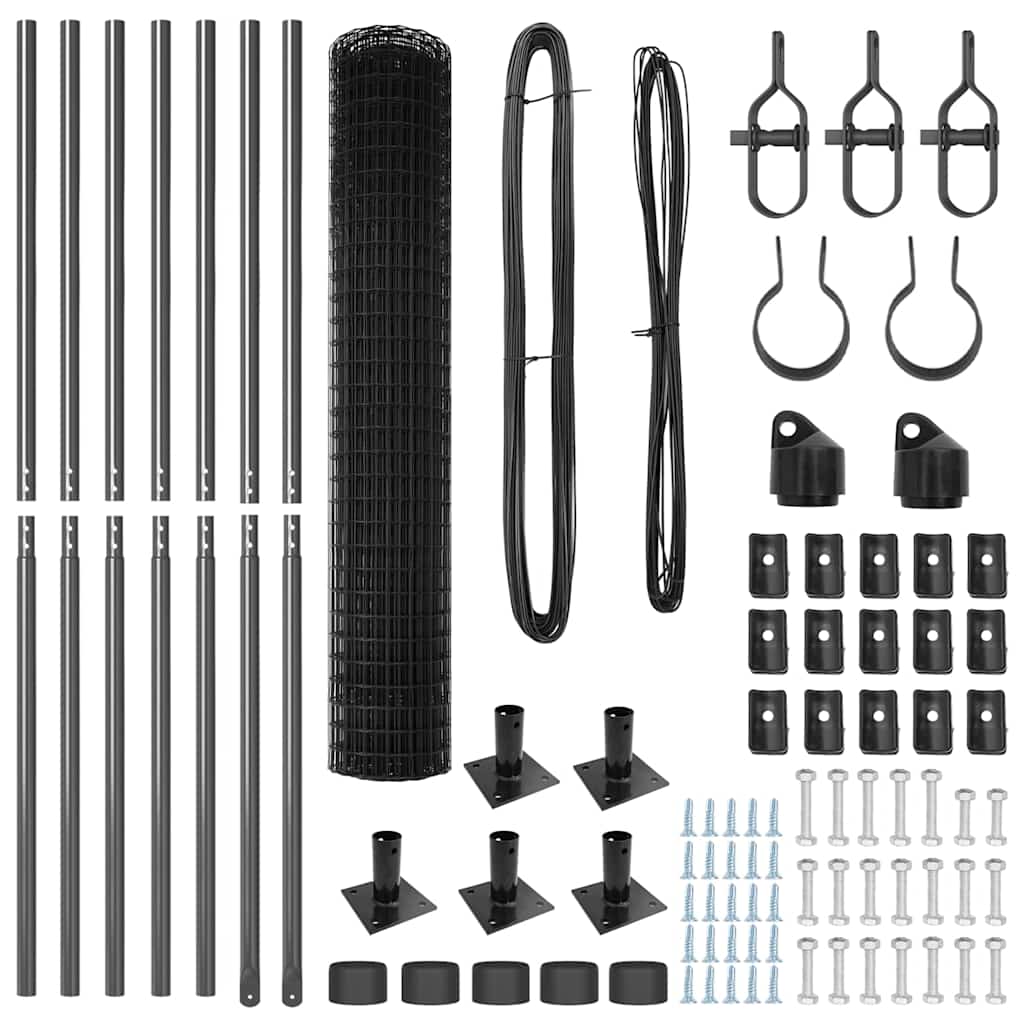 Der vidaXL Euro Zaun ist eine tolle Möglichkeit, deine Gartenbegrenzungen zu verschönern und alles sicher zu halten. Er ist robust und hat ein schickes Grau, das in deinem Außenbereich super aussieht. Langlebigkeit: Der vidaXL Euro Zaun ist so gebaut, dass er allen Wetterbedingungen standhält, was ihn zur zuverlässigen Wahl für deine Zaunbedürfnisse über Jahre macht. Seine Materialien sind schutz vor Korrosion und Abnutzung. UV-beständig: Dieser Zaun wurde dafür gemacht, UV-Strahlen abzuwehren, was ihn ideal für sonnige Plätze macht. Er behält seine Farbe und Stabilität, sodass du dir keine Sorgen über Verblassen machen musst. Design: Das moderne, pulverbeschichtete Finish sieht schick aus und fügt sich gut in jeden Garten ein und ist dazu noch praktisch. Vielseitige Nutzung: Dieser Zaun ist ideal für alles, vom Gartenzaun bis zur Markierung von Grundstücksgrenzen und erfüllt alle Anforderungen von Hausbesitzern. Das flexible Design passt sich gut an verschiedene Situationen an. Komplettset: Kommt mit allem, was du brauchst, wie Zaunpaneele, Pfosten und Montagematerial, sodass der Aufbau einfach und schnell geht, um deinen Bereich fusselig zu sichern.