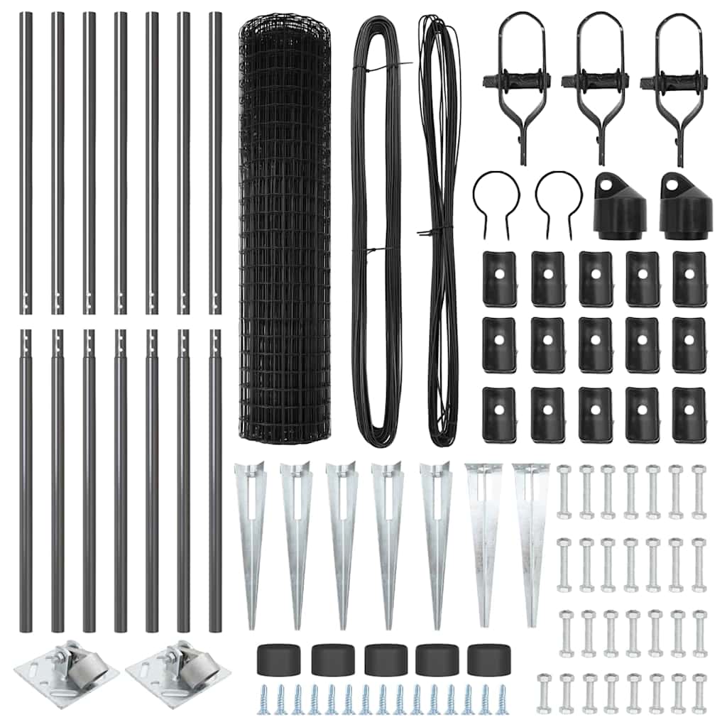 Der vidaXL Euro Zaun in coolem Grau ist eine super Möglichkeit, deine Gartenumgrenzungen aufzuwerten und alles sicher zu halten. Er ist robust und hat einen modernen Look, der gut in jede Außeneinstellung passt. Haltbarkeit: Der vidaXL Euro Zaun hält super vielen Wetterbedingungen stand und ist eine zuverlässige Wahl für deine Zaunbedürfnisse. Die robusten Materialien schützen vor Rost und Abnutzung. UV-Beständig: Der Zaun ist gegen UV-Strahlen gemacht und behält seine graue Farbe sowie seine Stärke, sodass du ihn auch an sonnigen Orten bedenkenlos aufstellen kannst. Design: Das moderne Matt-Finish gibt dem Zaun ein schönes Aussehen, das toll zu jedem Garten oder Außenbereich passt und dabei praktisch bleibt. Vielseitige Anwendung: Der Zaun lässt sich mühelos an verschiedene Anwendungen anpassen, ob zum Abstecken von Gartenbereichen oder zur Definition von Grundstücksgrenzen und erfüllt damit viele Bedürfnisse der Hausbesitzer. Sein flexibles Design passt in verschiedene Szenarien. Komplettpaket: Enthält alles, was du brauchst, wie ein Zaunpanel, Zaunankerfixierung und Drähte, sodass der Aufbau einfach ist und du deinen Raum ganz leicht sichern kannst.