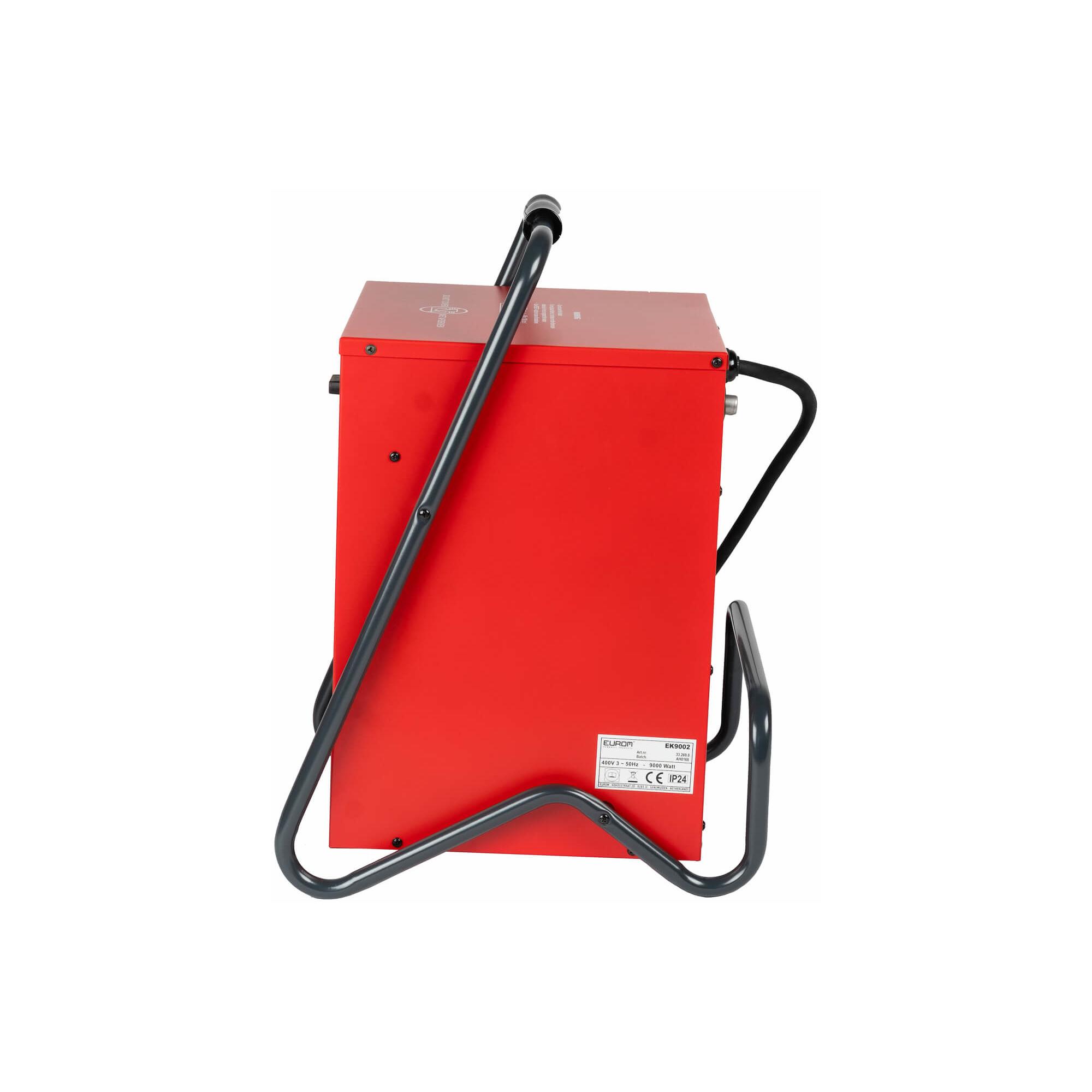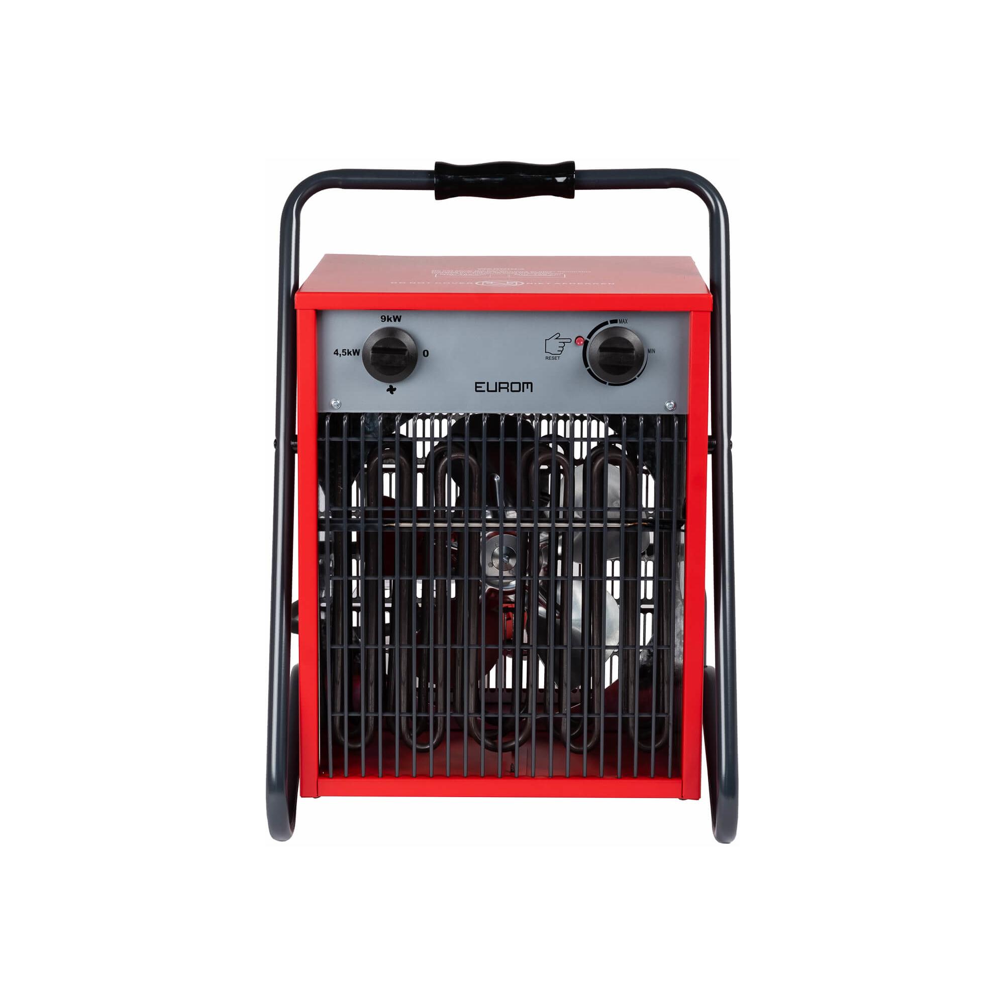 Der Eurom EK9002 ist eine elektrische 400-V-Heizlüfterheizung für den Einsatz in Werkstätten, Schuppen und Garagen. Dank der großen Leistung von 9000 Watt ist der Raum in kürzester Zeit wunderbar warm.