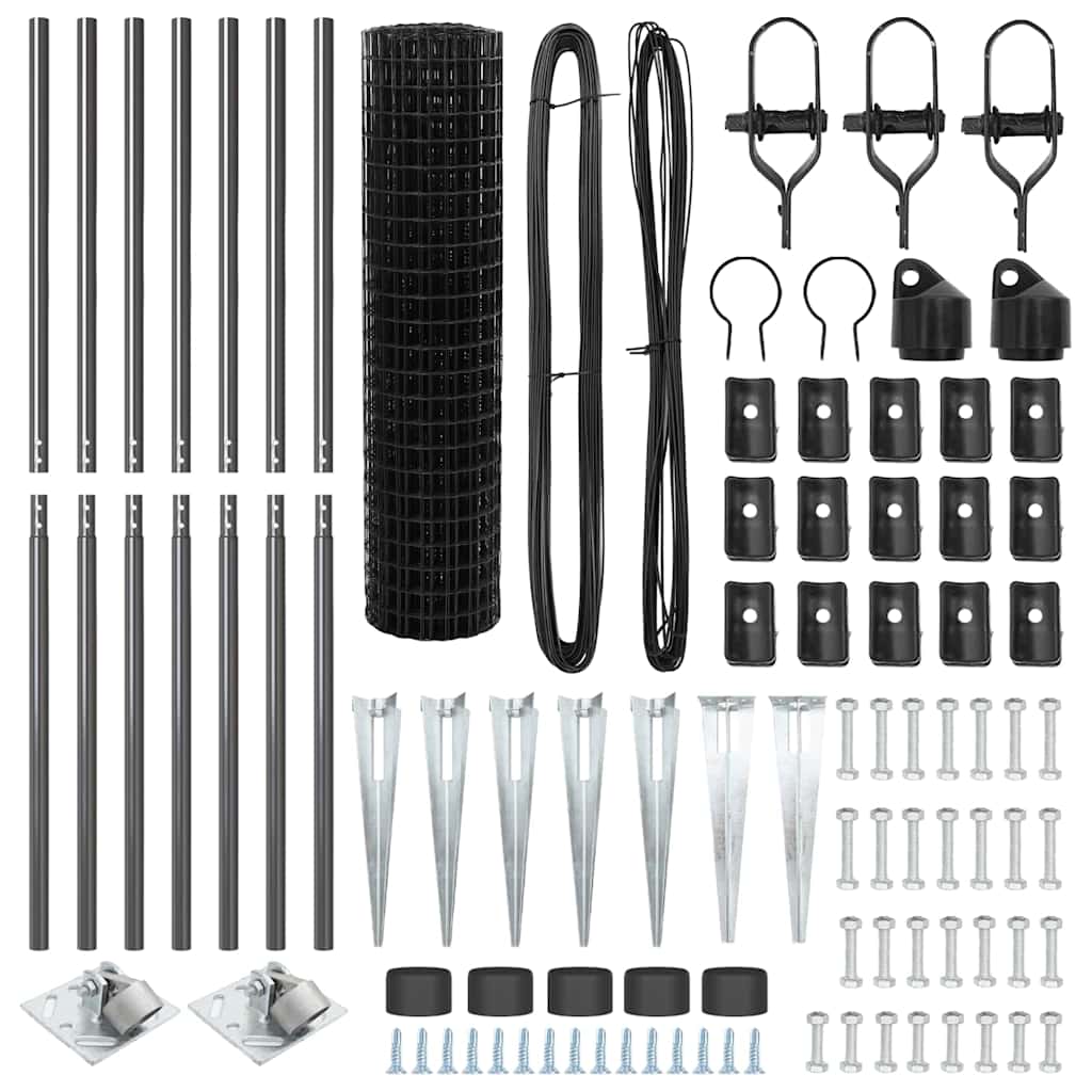 Der vidaXL Eurozaun ist eine clevere Wahl, um die Grenzen deines Gartens aufzuwerten und alles sicher zu halten. Er besteht aus robusten Materialien mit einem glatten grauen Finish und ist eine coole und stylische Ergänzung für deinen Außenbereich. Langlebigkeit: Der vidaXL Eurozaun ist dafür gemacht, allen Wetterbedingungen standzuhalten und gibt dir eine zuverlässige Zaunlösung, die lange hält. Seine robuste Bauweise widersteht gut dem Verschleiß. Wetterfest: Hergestellt aus wetterfesten Materialien behält dieser Zaun seine Struktur und sein Aussehen und ist somit eine tolle Wahl für verschiedene Klimazonen. Design: Mit einer glatten lackierten Oberfläche erfüllt dieser Zaun nicht nur seinen Zweck, sondern verbessert auch das Aussehen jedes Außenbereichs. Vielseitige Nutzung: Der Zaun ist perfekt fürs Abstecken von Gärten, Grundstücksgrenzen und mehr und ermöglicht es Hausbesitzern, Funktionalität und Stil schön zu kombinieren. Komplettpaket: Kommt mit allem, was du brauchst, wie Zaunpaneele, Draht und Ankerstifte, um die Installation einfacher zu machen und eine stressfreie Montage in deinen Außenbereichen zu ermöglichen.