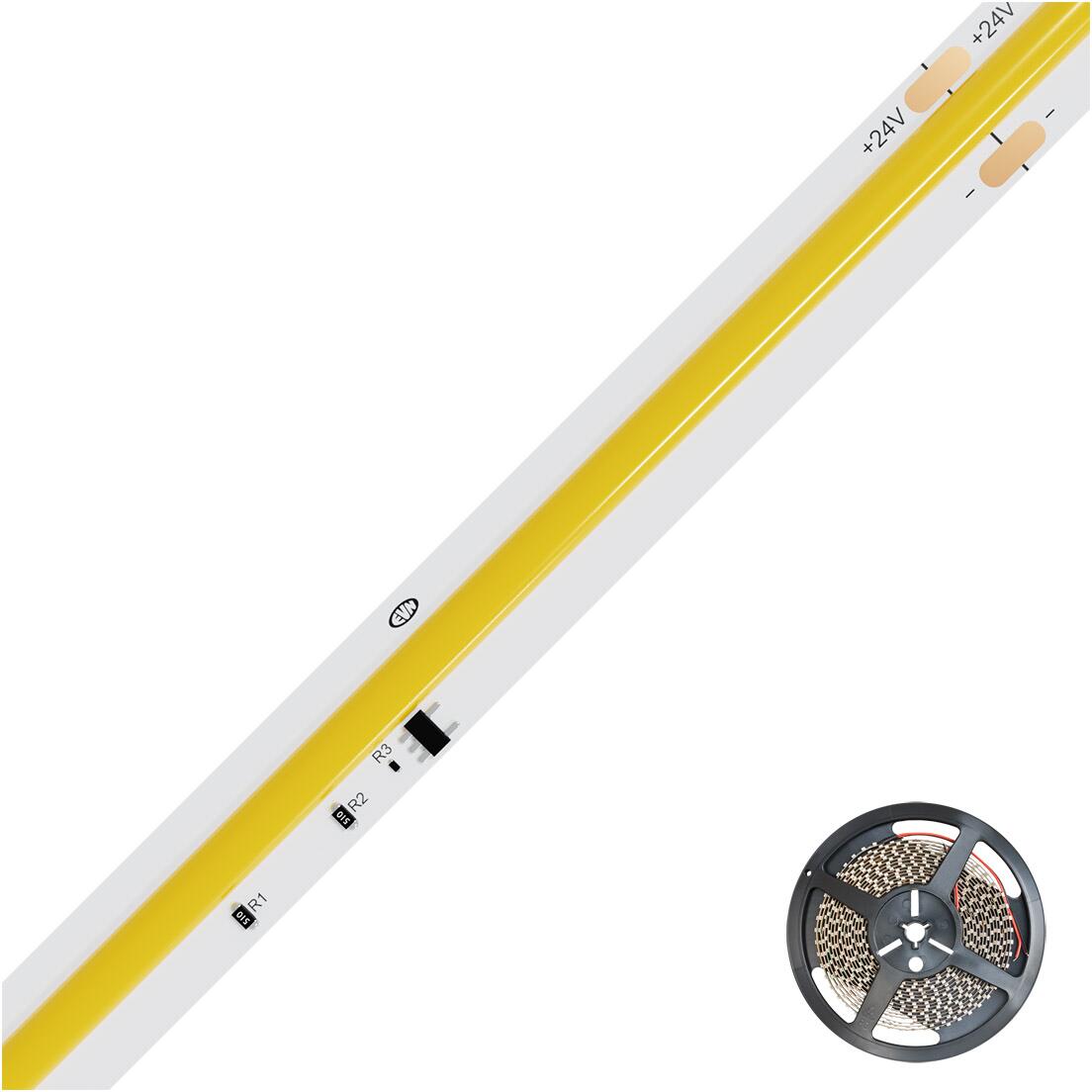 Erlebe die perfekte Kombination aus Flexibilität und Leistung mit unserem innovativen LED-Strip. Die COB LED-Chips sorgen für ein nahtloses Lichtbild, das selbst die höchsten Ansprüche erfüllt. Ob für den privaten Gebrauch oder anspruchsvolle Projekte, dieser LED-Strip bietet dir die Möglichkeit, deine Beleuchtungsideen in die Tat umzusetzen. Die einfache Montage und die Möglichkeit, den Strip zu kürzen, machen ihn zu einem vielseitigen Begleiter in deinem Zuhause. Achte darauf, den Strip auf wärmeleitenden Untergründen zu installieren, um eine optimale Leistung zu gewährleisten. Mit einer maximalen Einspeiselänge von 15 Metern kannst du auch größere Flächen problemlos ausleuchten.