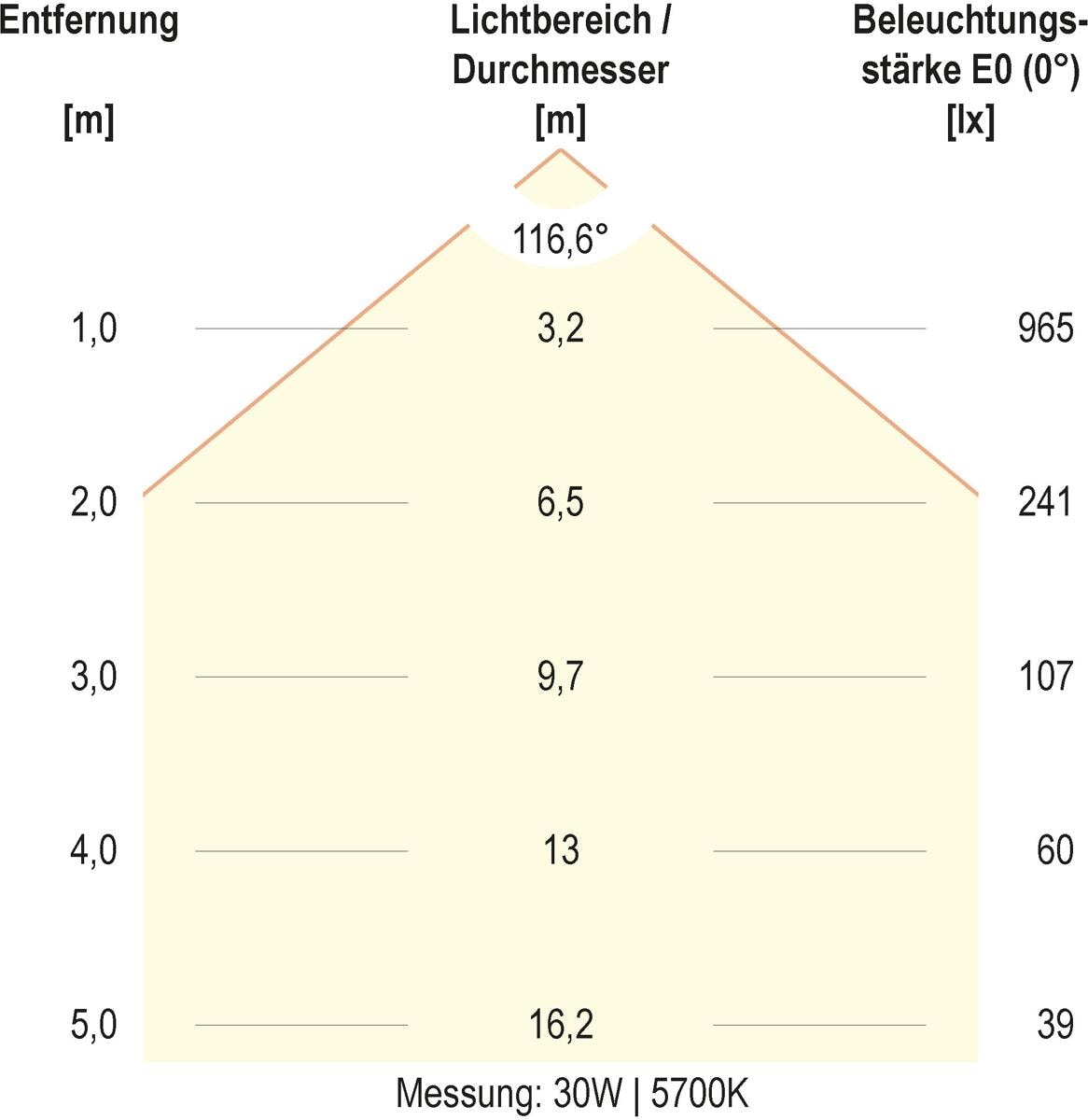 - Ausstrahlungswinkel: Extrem breitstrahlend >80°