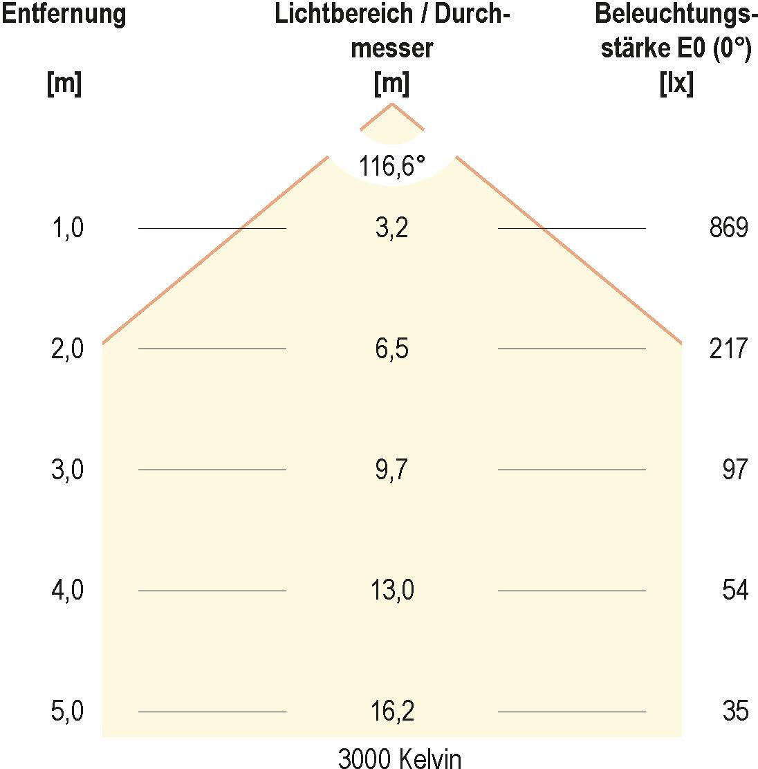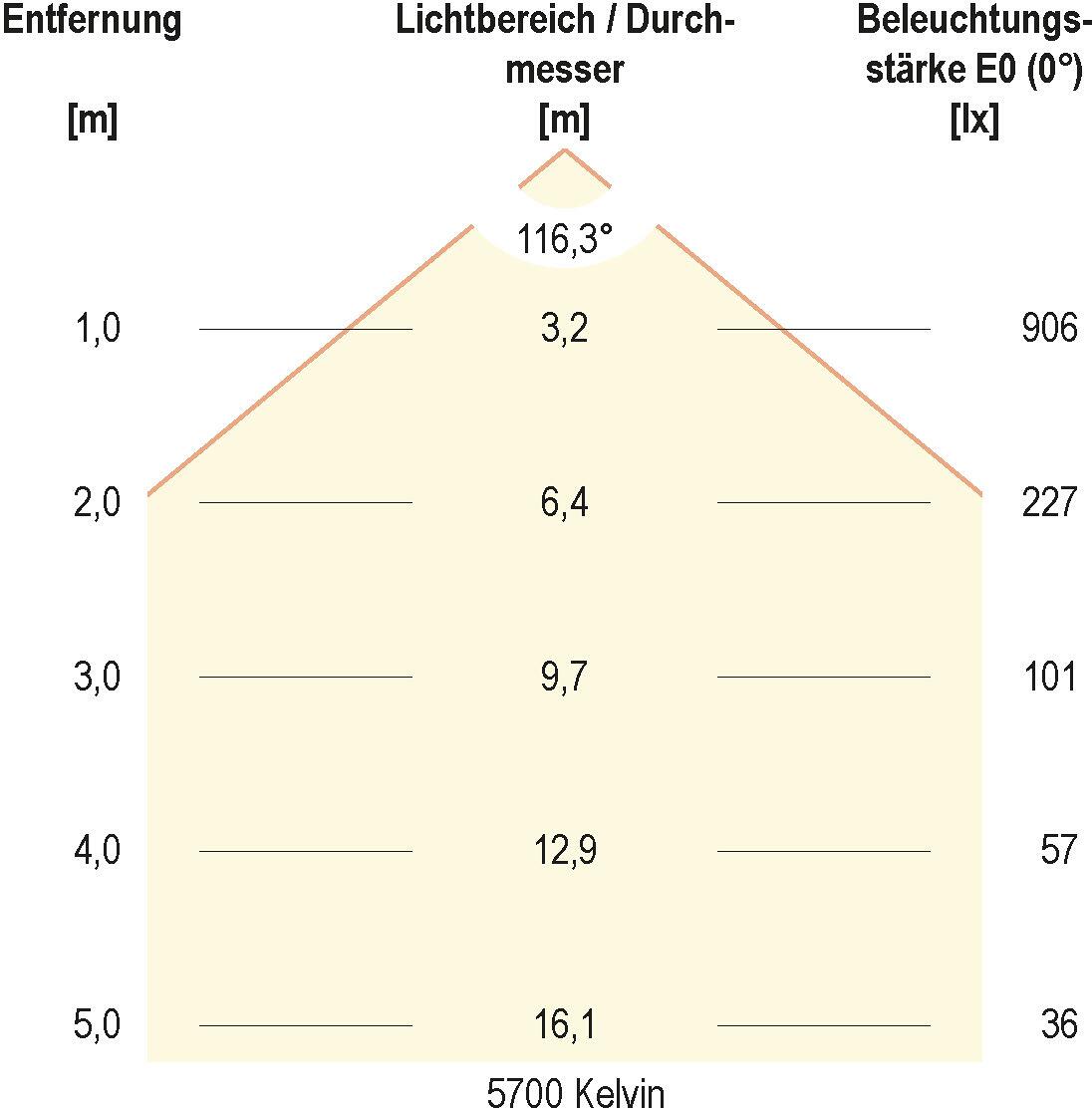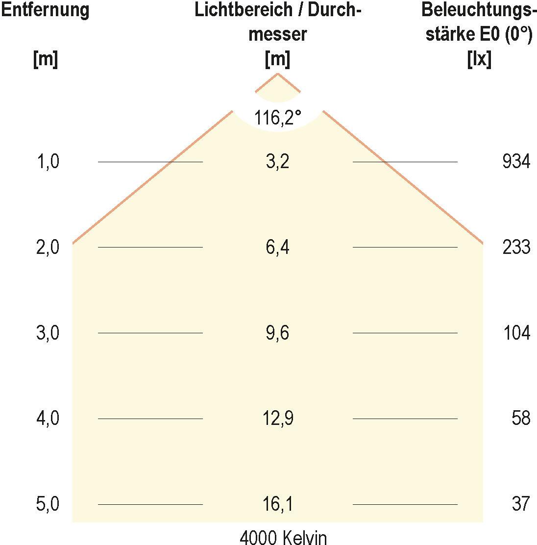 - Ausstrahlungswinkel: Extrem breitstrahlend >80°