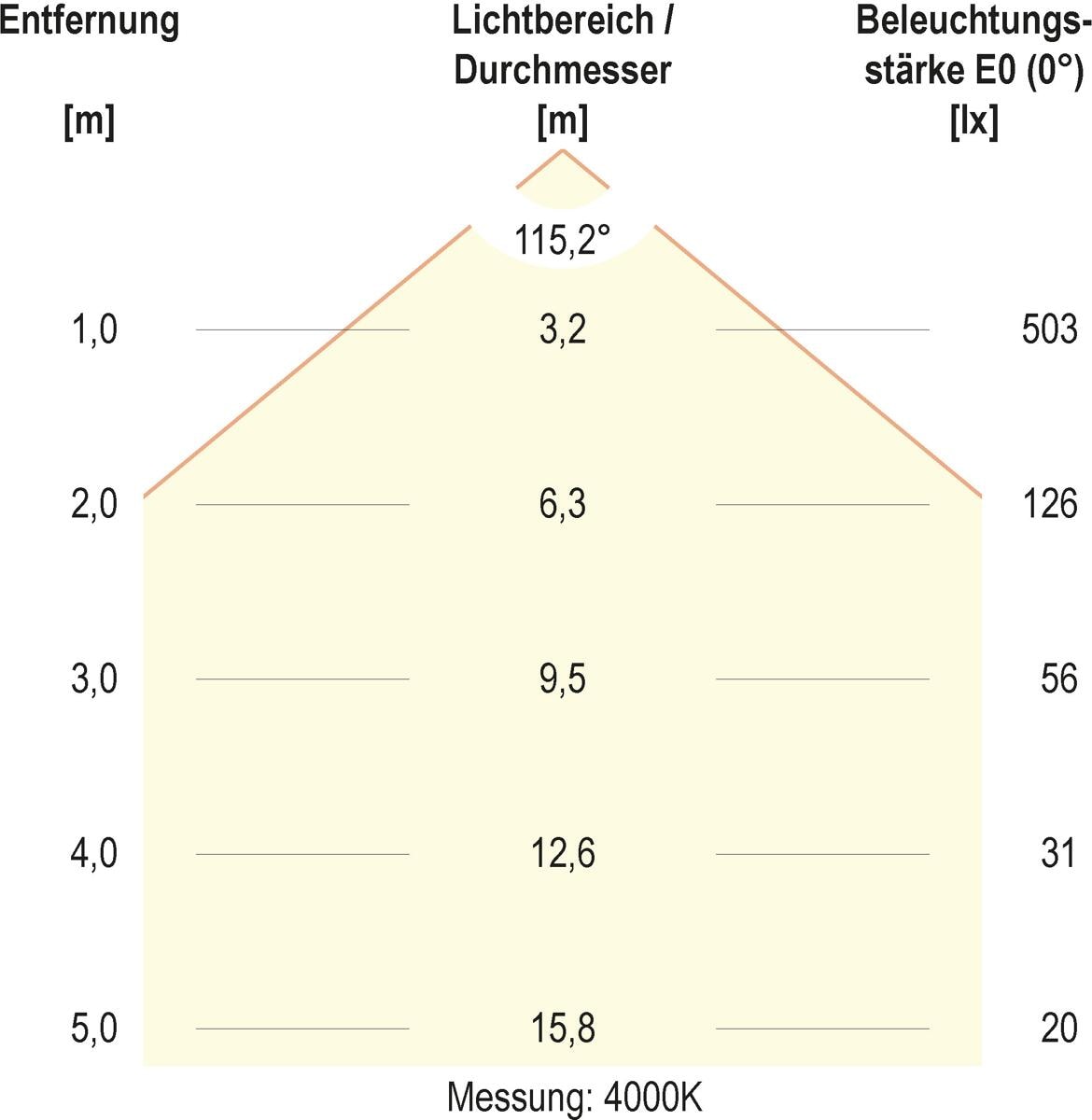 - Ausstrahlungswinkel: Extrem breitstrahlend >80°