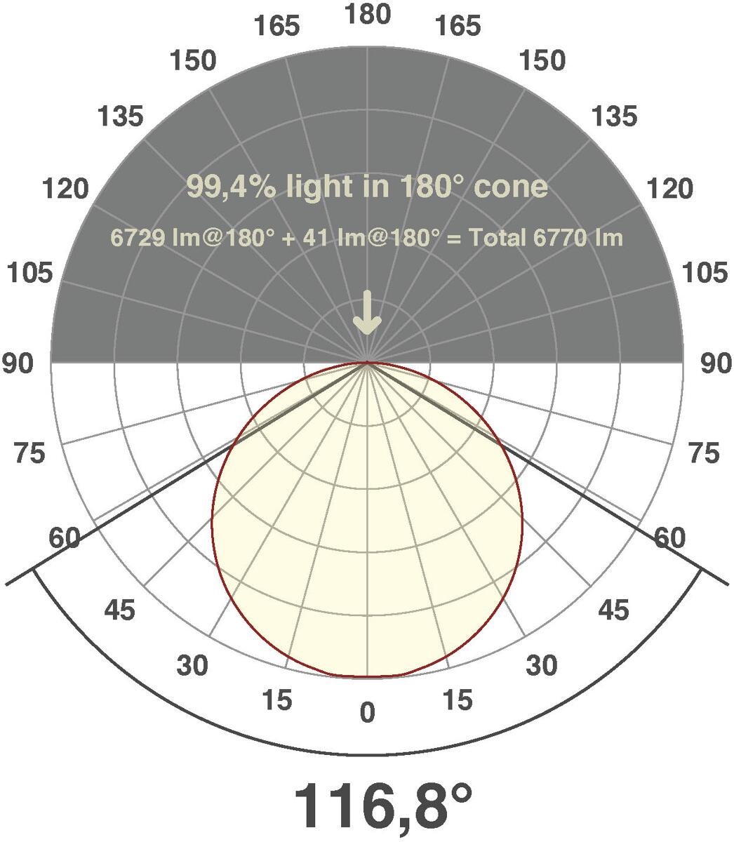 - Ausstrahlungswinkel: Extrem breitstrahlend >80°