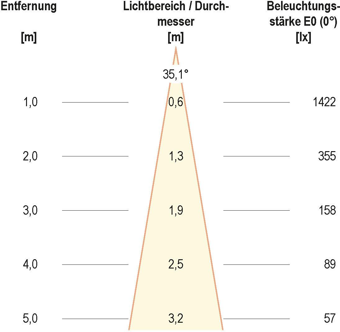 - Ausstrahlungswinkel: mediumstrahlend 21-40°