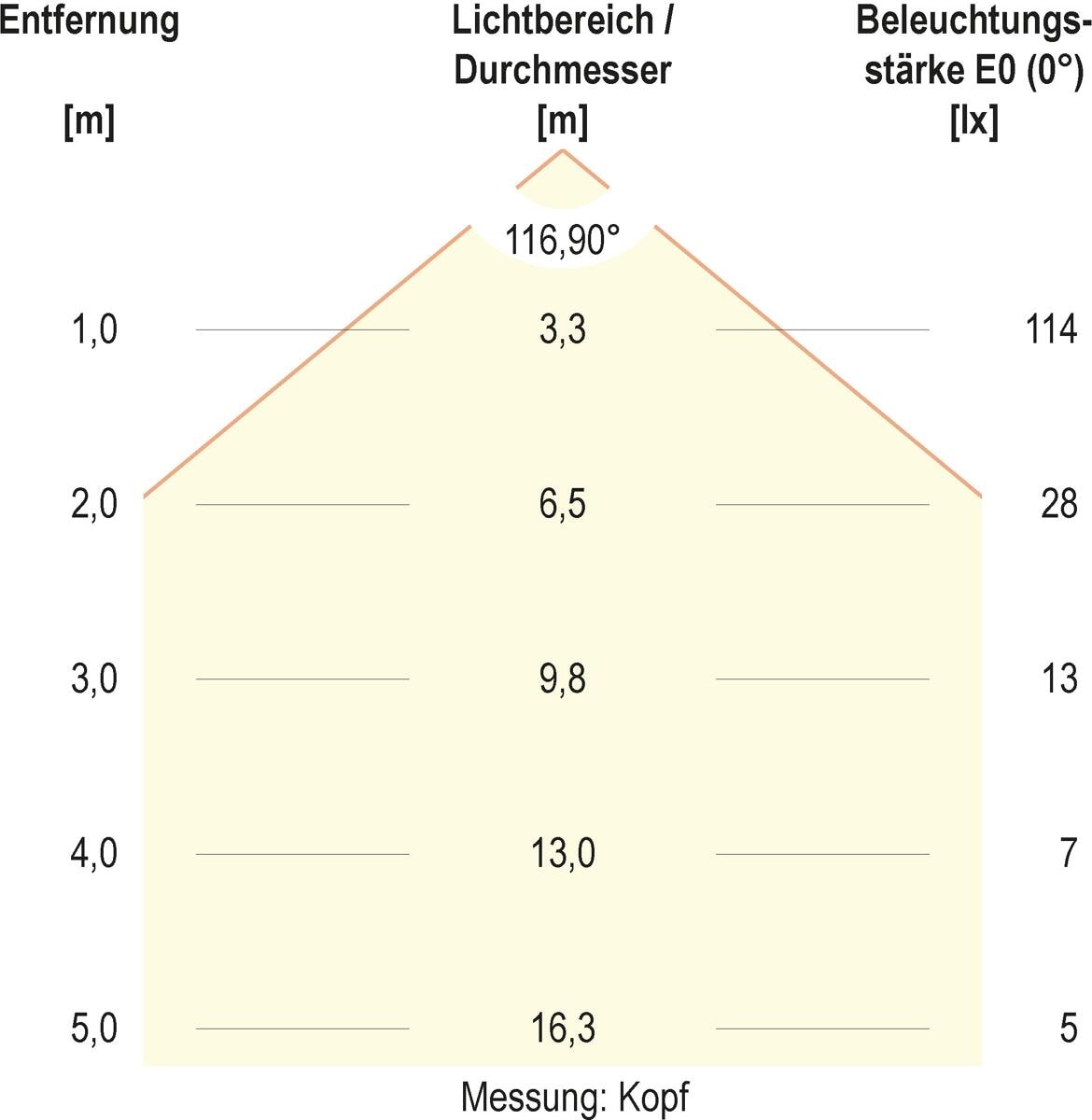- Ausstrahlungswinkel: Extrem breitstrahlend >80°