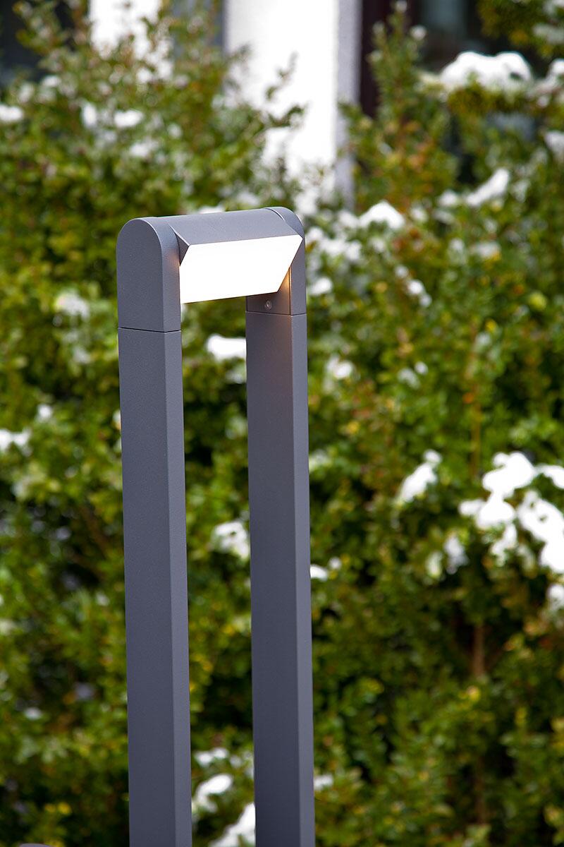 Die massive Pollerleuchte besticht durch ihr robustes Design und ihre Vielseitigkeit. Gefertigt aus Aluminium im Druckgussverfahren und mit einer pulverbeschichteten Oberfläche versehen, ist sie nicht nur langlebig, sondern auch wetterbeständig. Der schwenkbare Kopf der Leuchte ermöglicht eine präzise Ausrichtung des Lichts, sodass Gehwege, Beete oder andere Gartenbereiche optimal beleuchtet werden können. Mit einem Schwenkwinkel von 160° lässt sich die Leuchte flexibel anpassen. Der konisch verlaufende Leuchtensockel sorgt für eine stabile Standfestigkeit und fügt sich harmonisch in jede Gartenlandschaft ein. Die Lieferung erfolgt inklusive eines Bodenankers, der eine einfache und sichere Montage gewährleistet.