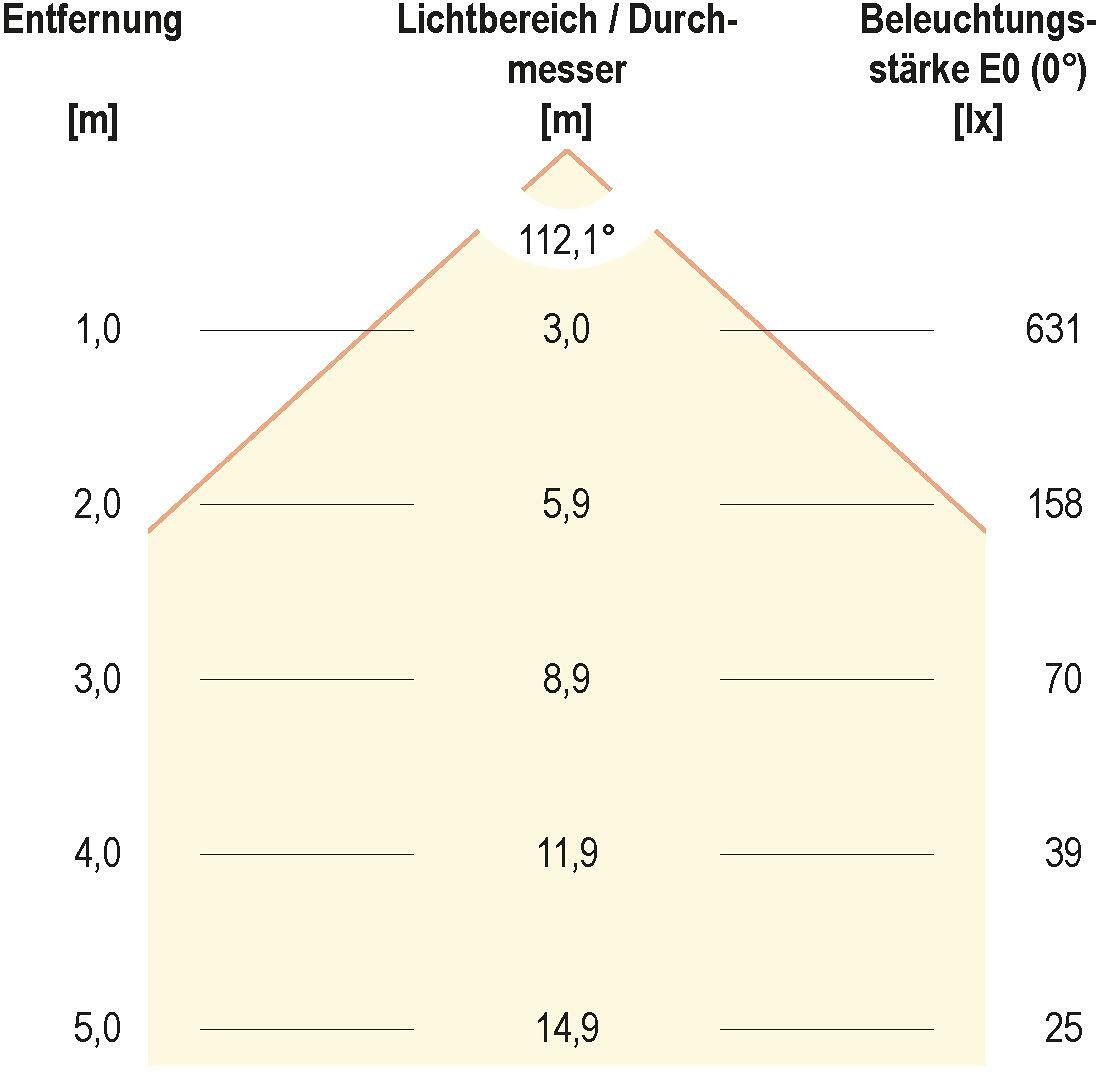 - Ausstrahlungswinkel: Extrem breitstrahlend >80°