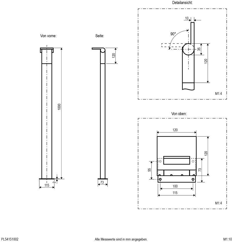 Massive Pollerleuchte mit schwenkbarem Kopf, gefertigt aus Aluminium im Druckgussverfahren und pulverbeschichtet. Die Leuchte ist perfekt zur Beleuchtung von Gehwegen, als Randbeleuchtung für Beete und vieles mehr im und rund um den Garten geeignet. Durch das schwenkbare Kopfteil kann die Leuchte perfekt auf das zu beleuchtende Objekt ausgerichtet werden. Der Schwenkbereich beträgt 90°. Passend zur Wegeleuchte gibt es die Wandleuchten (WL54151002 und WL54151002S).