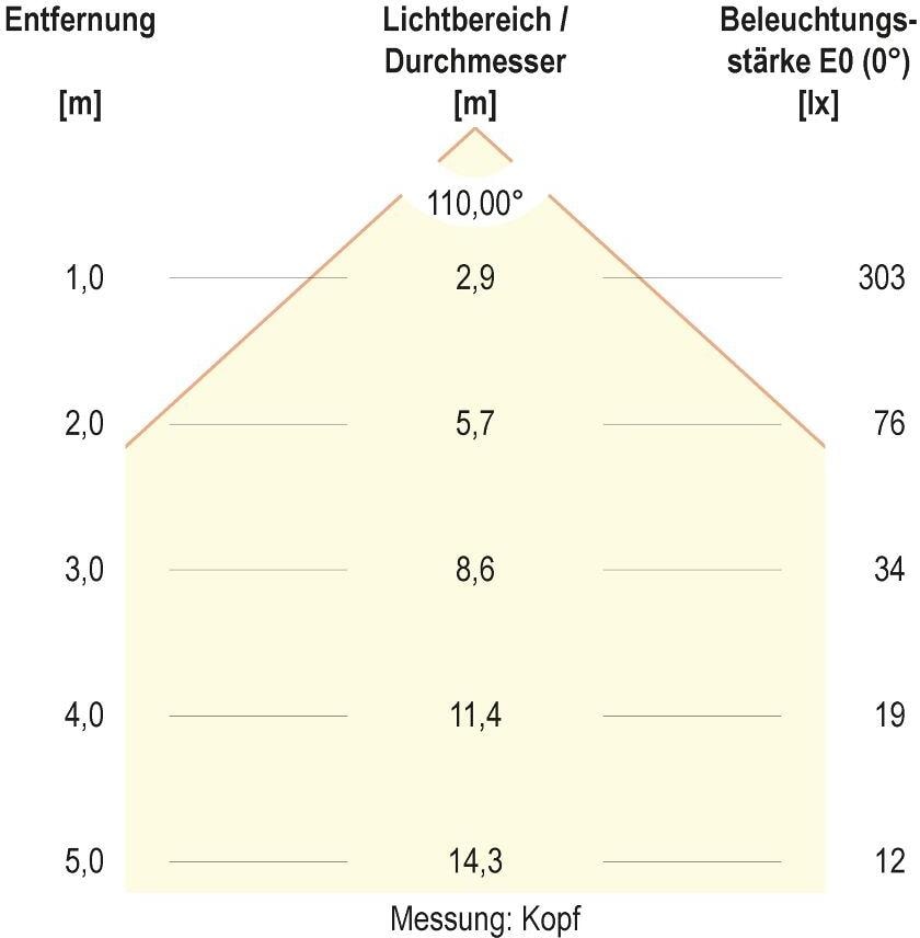 - Ausstrahlungswinkel: Extrem breitstrahlend >80°