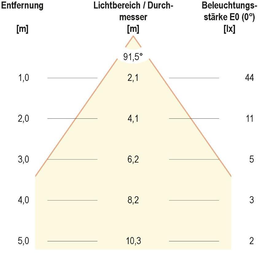 - Ausstrahlungswinkel: Extrem breitstrahlend >80°