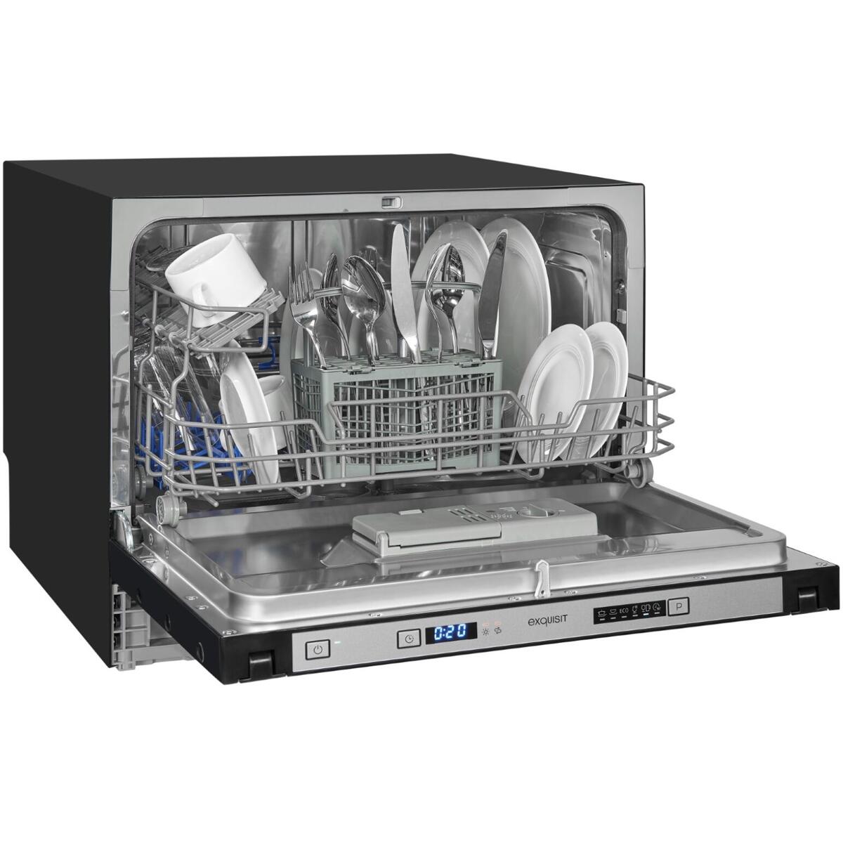 Exquisit EGSP1060-E-030F Einbau Tischgeschirrspüler, 55 cm breit, 6 Maßgedecke, einbaufähig, 6 Programme, Ecoprogramm, Startzeitverzögerung, Besteckkorb, schwarz (PV)