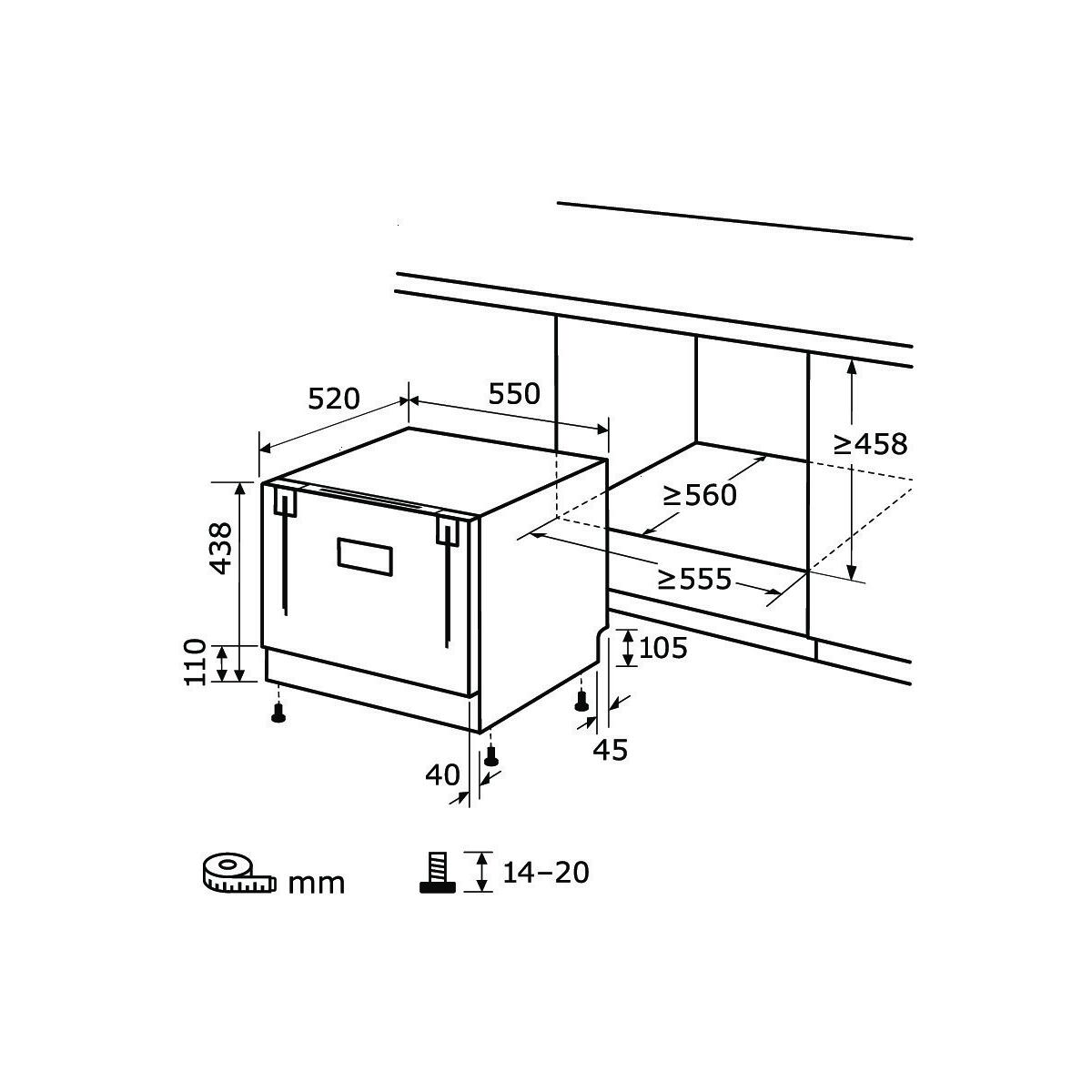 - Nischenmaße HxBxT 43,8 x 56,0 x 55,0 cm