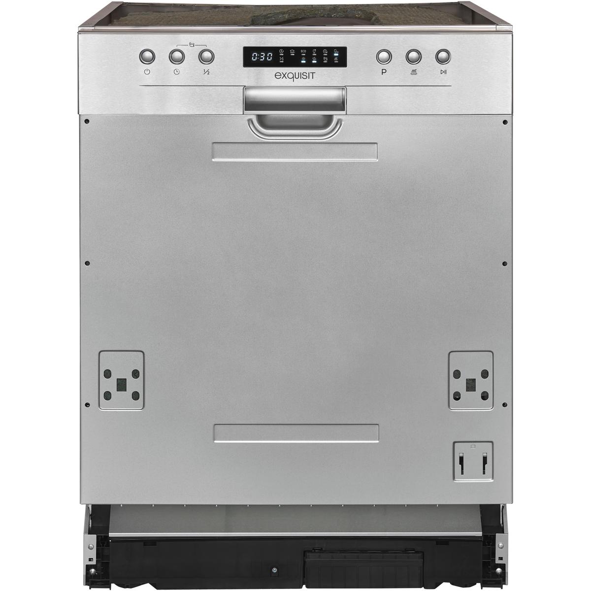 Exquisit EGSP9414-EB-030D Teilintegrierter Geschirrspüler, 60 cm breit, 14 Maßgedecke, Aquastopp, 6 Programme, Auto Door Open, Edelstahl