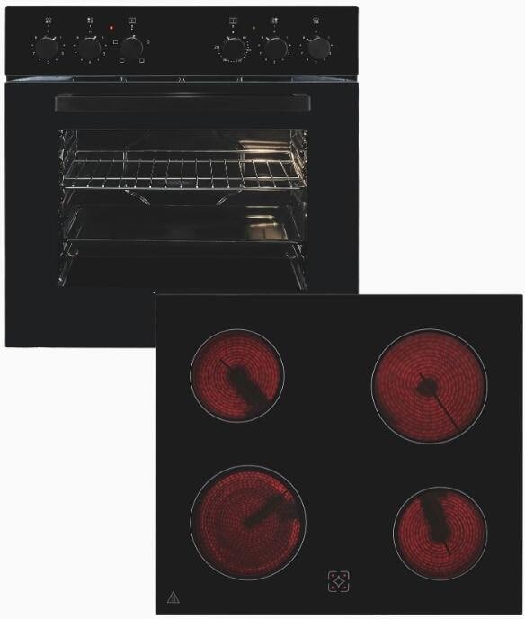 Exquisit EHE246-020-Set EEK A Herdset mit Glaskeramikkochfeld, 59,5 cm breit, 59 L, schwarz
