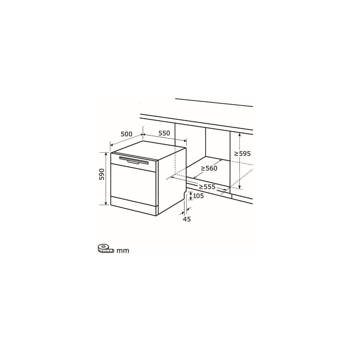 - Nischenmaß min. HxBxT 59,0 x 56,0 x 55,0 cm